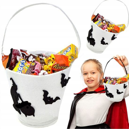 Bela Vedra za Sladkarije Halloween Korbi je nujna oprema za letošnjo noč čarovnic. Ta najbolj priljubljen dodatek je popolna izbira za zbiranje sladic ali kot dekorativni kos, ki bo popestril vašo praznično atmosfero. Izdelana iz kakovostnega filca in opremljena z ergonomskim ročajem za enostavno pr Celoten opis