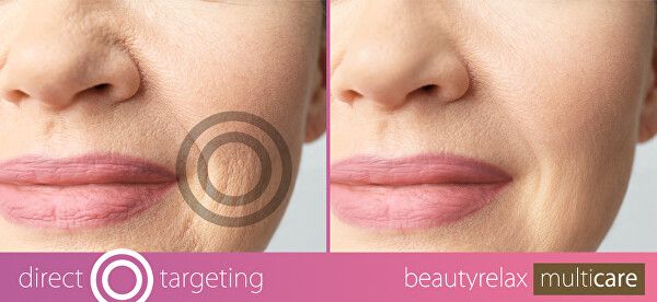 Specifikacija 5 samodejnih programov z vnaprej nastavljenimi načini zdravljenja kože. Primerno za komercialno in zasebno uporabo. Glava za nanos je primerna za vse tipe kože. Ergonomska oblika – se pri tretiranju kože udobno drži v roki. Brezžična uporaba zahvaljujoč vgrajeni polnilni Li-ion bateriji. Polnjenje kabla USB (priloženo). Tehnologija lepotnega tretmana z napravo BeautyRelax Multicare: radijska frekvenca Aplikacijska glava ustvarja energijo prek radijskih frekvenc z zelo specifično močjo in frekvenco. Radiofrekvenčni valovi so optimizirani tako, da povzročajo toplotni gradient, ki bistveno vpliva na procese v plasti dermisa. Dobavljena energija aktivira preoblikovanje kolagenskih vlaken in elastina. Ciljanje celo v krajih z bolj izrazitim sloj maščobe in naknadno vzbujanje metabolnih procesih največja možna energija ima pomemben vpliv na zelo učinkovito glajenje viseča in deformiranih konture.