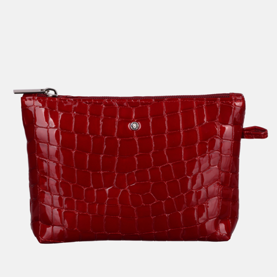 Ženska rdeča kozmetična torbica iz lakiranega usnja s krokodiljim vzorcem – za zahtevno žensko
