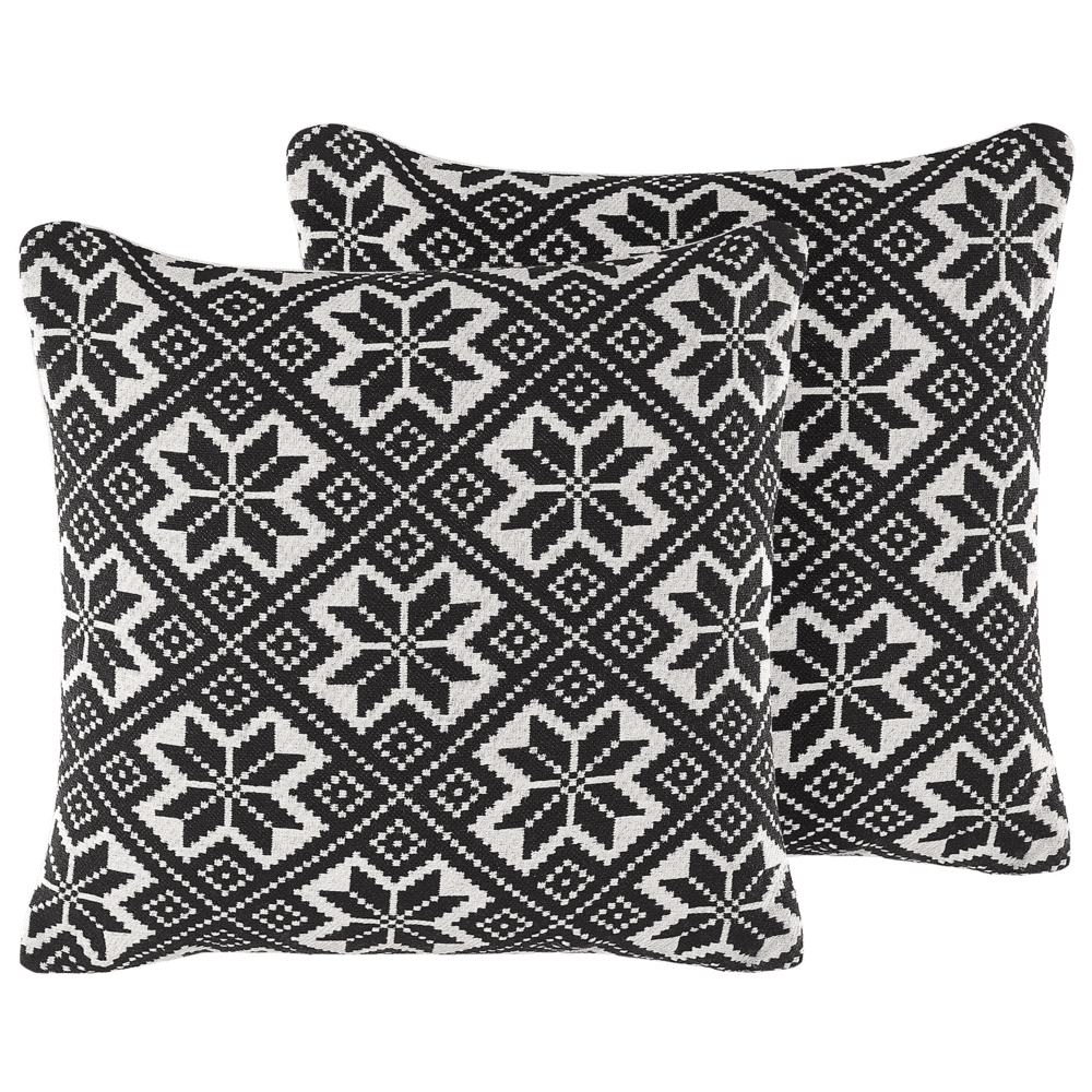Beliani Komplet 2 bombažnih vzglavnikov 45 x 45 črno-belih BESKOZ