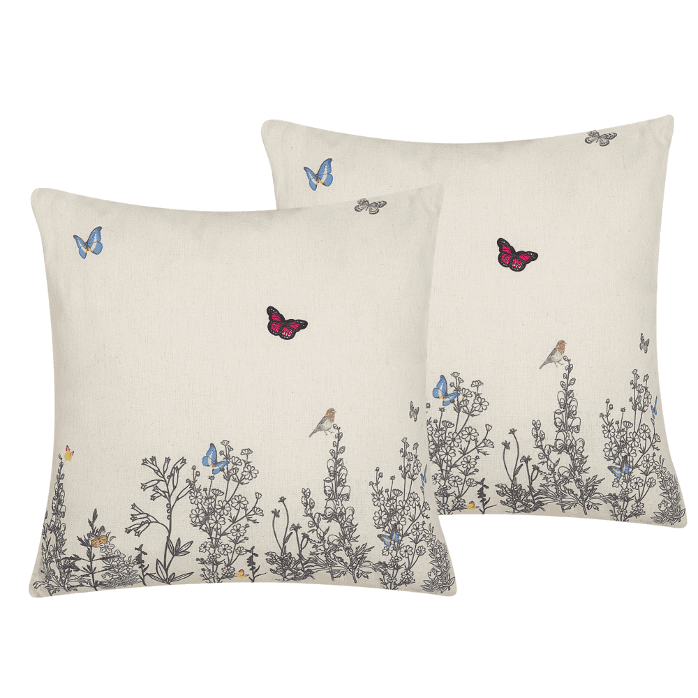 Beliani Komplet 2 vzglavnikov z vzorcem metuljev 45 x 45 cm bež MUSA