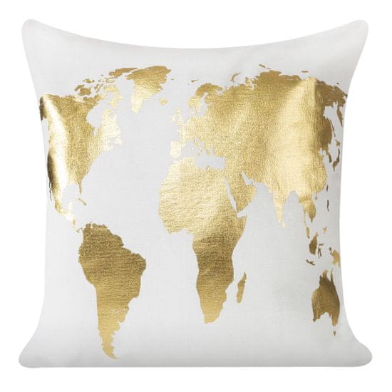 Vzglavnik, okrašen z zlatim tiskom zemljevida sveta. Zapenjanje z zadrgo. Lahko ga operete obrnjenega navzdol. Širina: 40 cm, dolžina: 40 cm, barva: bela/zlata, sestava: 30 % bombaž 70 % poliester