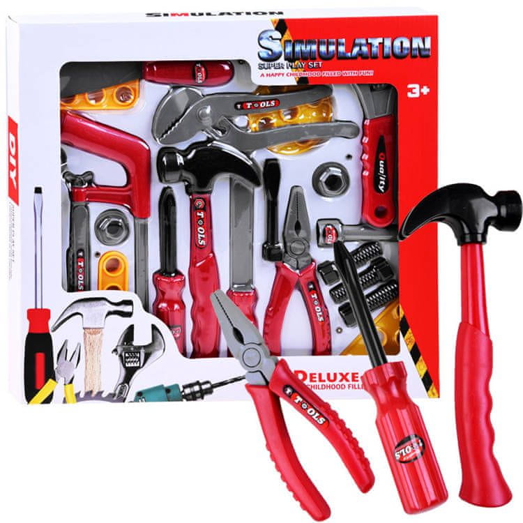 Set je sestavljen iz 23 delovó opremljen je s potrebnimi predmeti, ki so potrebni v domači delavnici. S takšnimi orodji bo vsaka okvara v hiši odpravljena v trenutku. Komplet je v celoti izdelan iz plastike in je dobro dodelan, zato je izjemno zabaven za vsakega malega mojstra. Orodja so zelo priročna in spominjajo na realistično opremo.