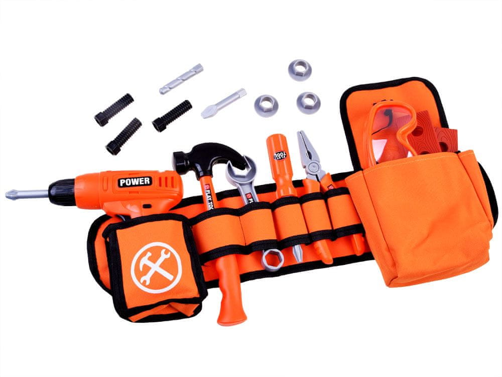 Za pasom z žepom boste imeli najnujnejše orodje vedno pri roki! V kompletu so tudi vijaki z maticami in baterijski vrtalnik/vijačnik. Ta orodja, ki so odlično izdelana in podrobno opisana, bodo zagotovo zabavna za vsakega malega mojstra! Komplet bo uporaben doma in na vrtu, zaradi njega se bo vaš otrok lahko počutil kot junak :)