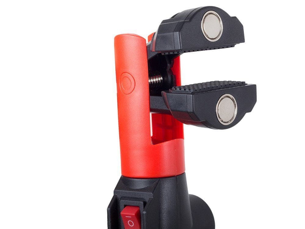 • Ima vgrajena 2 močna magneta nameščena na nastavljivem podstavku in 1 na zadnji strani svetilke