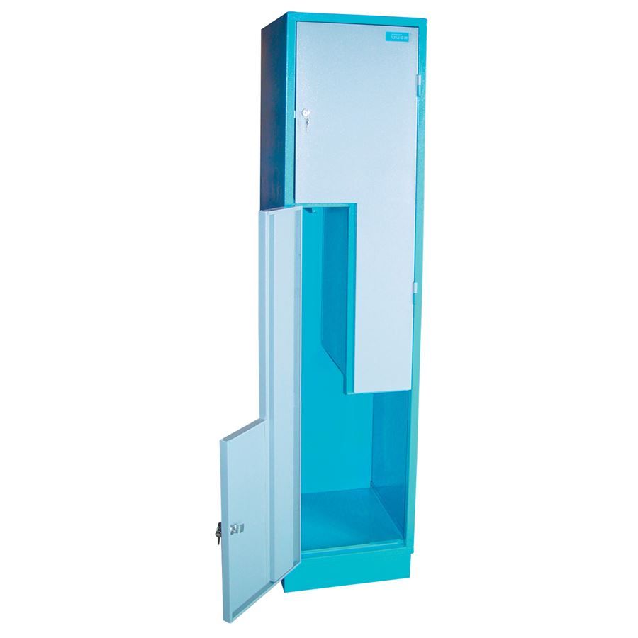 Güde KOVINSKA GARDEROBNA OMARA TIP Z ponuja pametno rešitev za shranjevanje v omejenih prostorih. Zasnovan v obliki črke Z omogoča dve ločeni garderobni enoti v enem samem stolpcu, kar je še posebej uporabno v garderobah, delavnicah, fitnesih ali pisarniških prostorih.