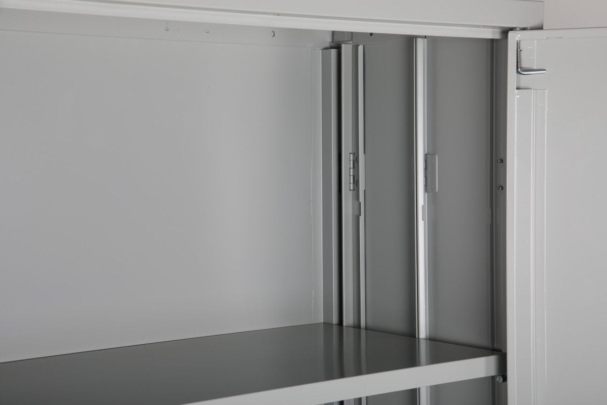 Zdaj je tu! Naša revolucionarna zložljiva omara za pisarne, arhive, skladišča itd. S svojim ravnim oblikovanjem, porabijo bistveno manj prostora med skladiščenjem in prevozom kot varjene omarice. Ne zahteva montaže, saj se zlahka zloži in je pripravljena za uporabo v manj kot 1 minuti. Omarico je lahko tudi zložiti, če se uporablja npr. za sezonsko prodajo ali skladiščenje ter na raznih razstavnih prostorih ali sejmih. To je preprosto najpametnejša rešitev za shranjevanje tako za vas kot za okolje! Vključene so 3 fiksne police. Za ta model ni mogoče kupiti dodatnih polic.