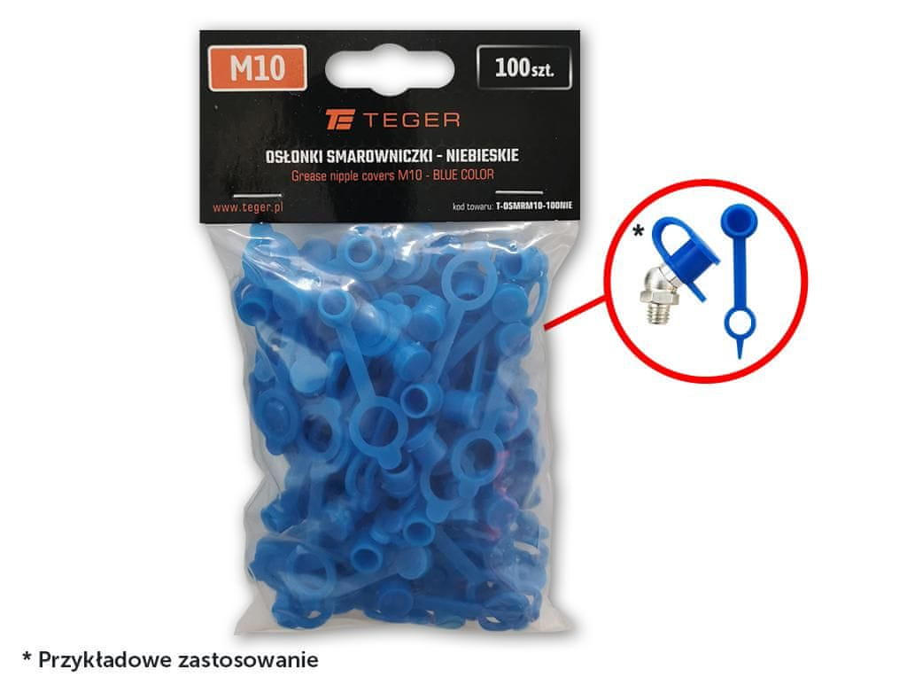 Set pokrovčkov za mazalke M10, modra, TEGER. Uporablja se za zaščito mesta mazanja pred kontaminacijo.