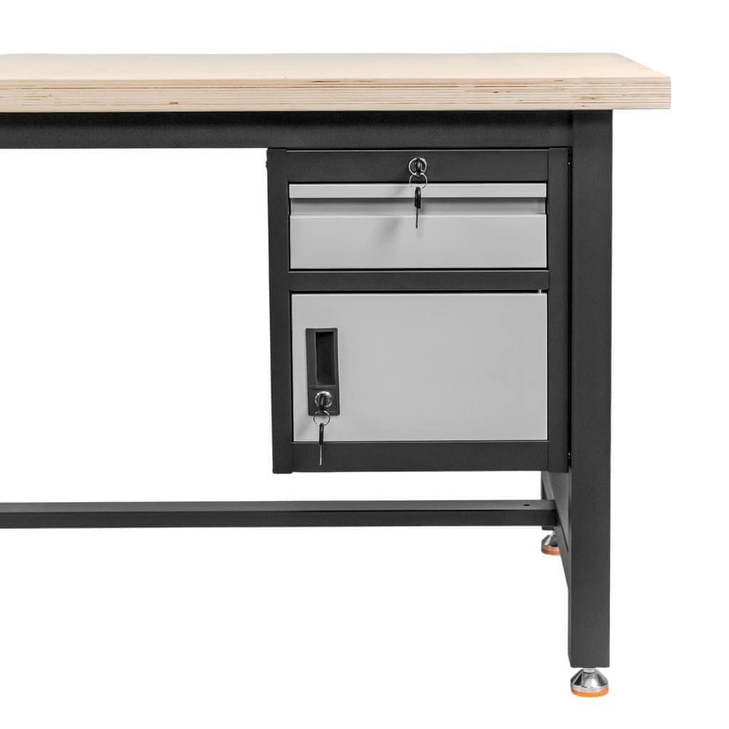 Omara za orodje Mega-M za delovne mize je zanesljiva in robustna rešitev, ki vam bo pomagala ohranjati urejenost na vašem delovnem mestu. Zahvaljujoč praktični konfiguraciji z enim predalom in omarico, ki jo je mogoče zakleniti , je idealna kot viseči element za delovne mize. Grafitno ohišje s sivo sprednjo stranjo ustvarja profesionalen videz, ki dopolnjuje vsak delovni prostor. Ta visokokakovosten viseči podstavek je bistven dodatek k funkcionalno zasnovanemu delovnemu prostoru, delavnici, skladišču ali tehničnemu laboratoriju. Viseči podstavek je združljiv z delovnimi mizami Mega-M.