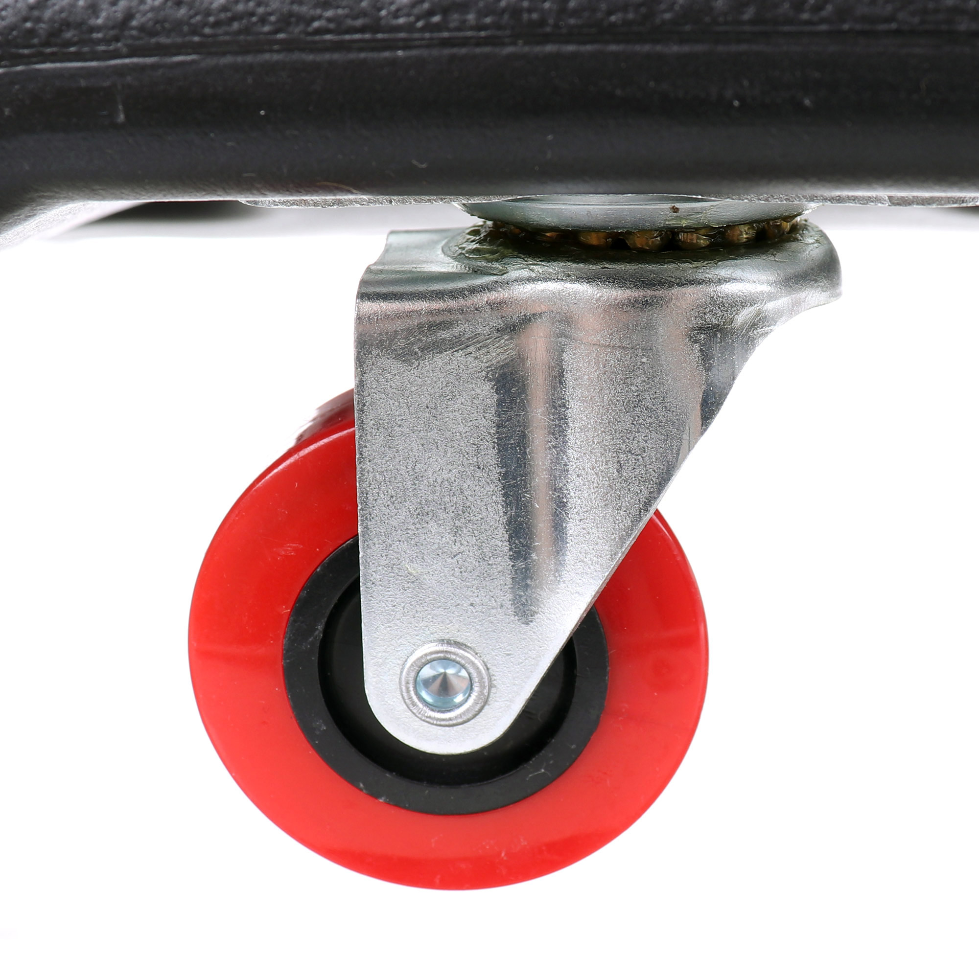 Udobna, oblikovana zIBALKA. Ima ročaj za nošenje, blazino za vzglavnik in robustna kolesa. Široka in odporna na udarce. Vidne spodnje luknje ojačajo strukturo, kolesa z ležaji pa omogočajo enostavno premikanje pod avtomobilom. Zasnovano posebej za avtomehanike.