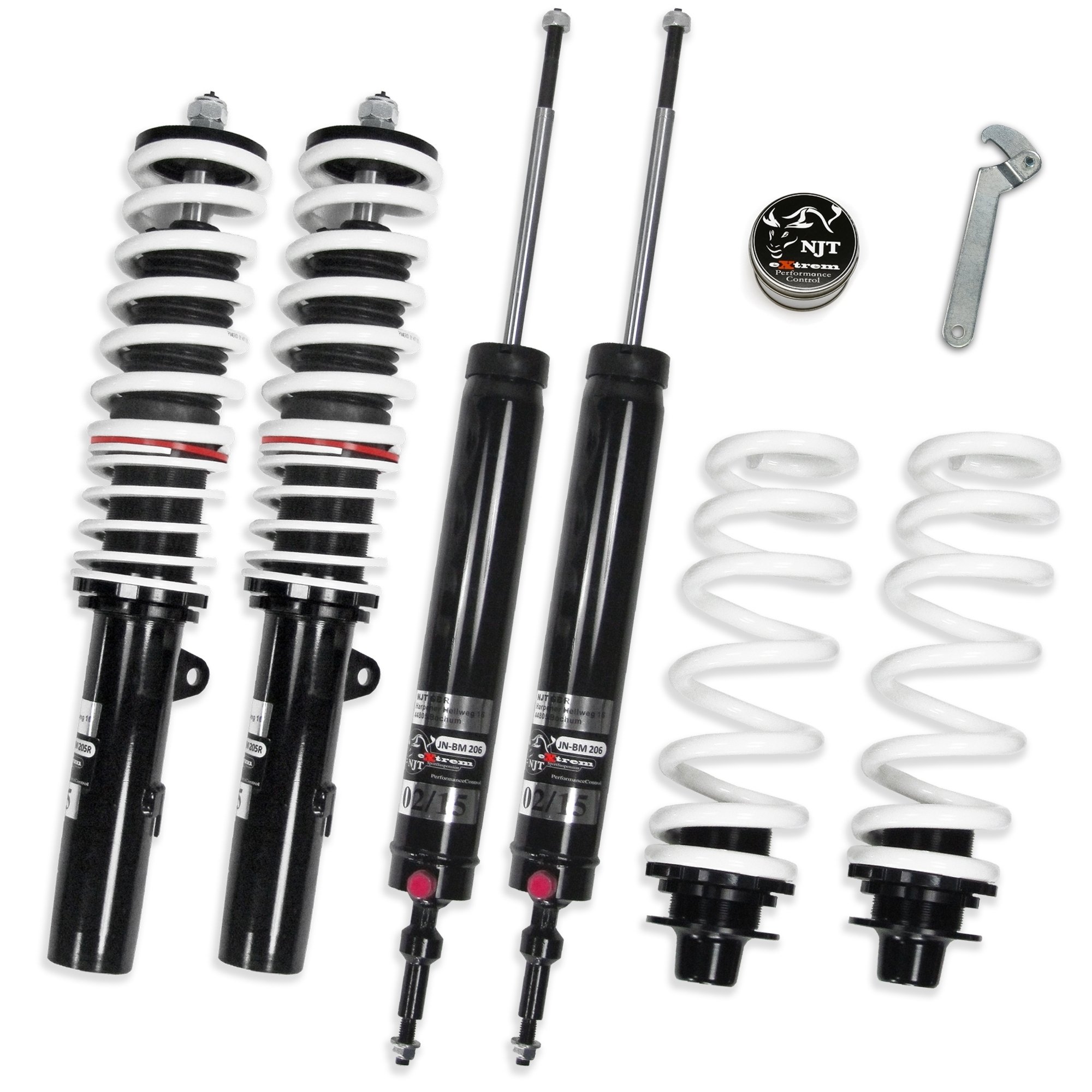 Amortizerji z vijačno podvozjem NJT EXTREM je idealna rešitev za voznike, ki želijo doseči maksimalno natančnost vožnje. Zahvaljujoč nastavitvi trdote lahko vzmetenje prilagodite svojim individualnim potrebam . Amortizerji imajo povečano silo blaženja s skrajšanim hodom. Vzmeti znižujejo težišče in s tem zmanjšujejo prečno in vzdolžno nagibanje vozila med ovinki in pospeševanjem. Vozilo doseže boljše vozne lastnosti, kar znatno izboljša varnost vožnje.