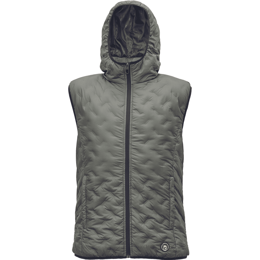 Opis: Zimski puhovni brezrokavnik z zadrgo in kapuco. 2 globoka stranska žepa z zadrgo. Elastični pas in manšete rokavov. Material: Zgornja plast oblačila – 100 % poliester. Notranja podloga oblačila – 100 % poliester, 70 g/m², taft. Notranja izolacija oblačila – 90 % puh, 10 % perje, 220 g/m². Debelina materiala – 400 CUIN. Standardi: EN ISO 13688. Vzdrževanje: Prati pri 30 °C, z blagim programom pranja, ne beliti, sušiti na ravni površini, ne likati, ne kemično čistiti.