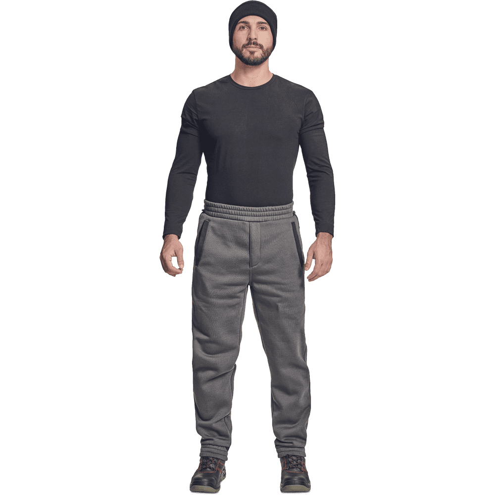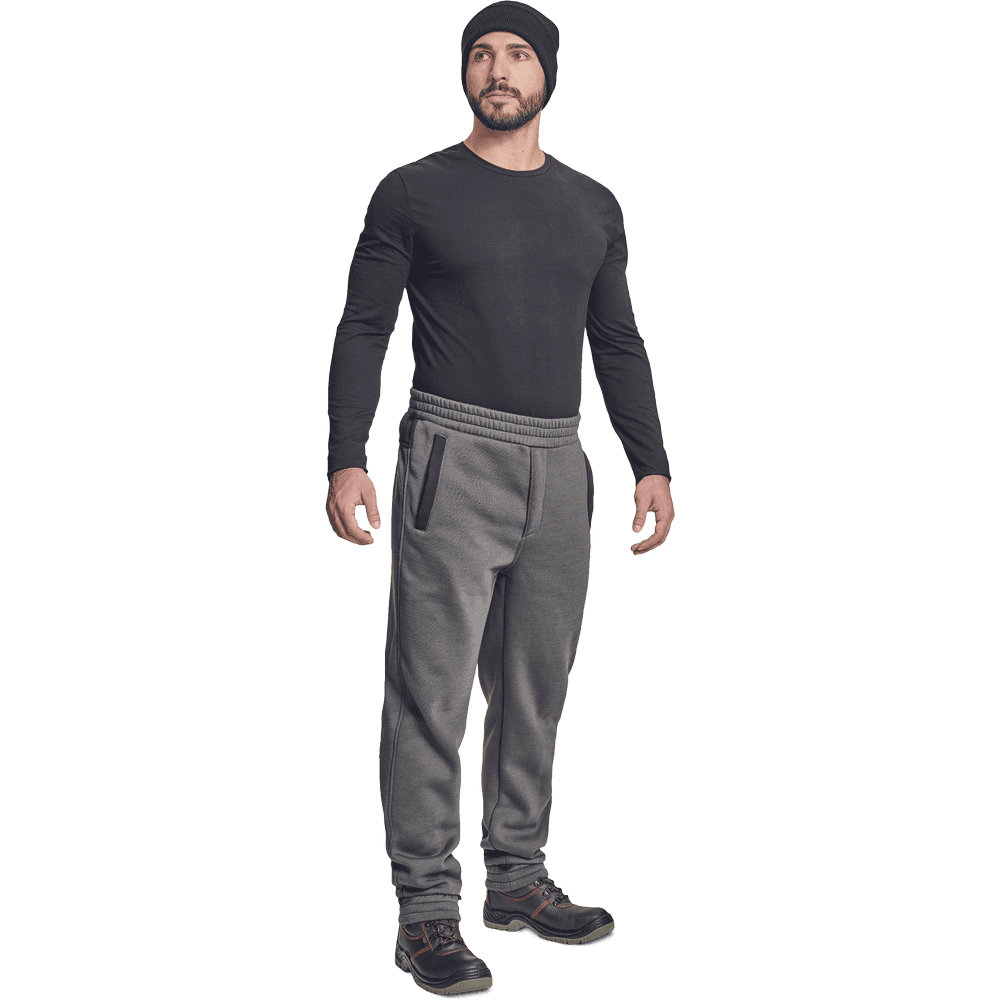 Moška trenirka z elastičnim pasom in spodnjim delom hlačnic. Brušena notranjost, 2 stranska žepa, zadrga. Zanke za pritrditev na zimske hlače Cremorne. Standardi: EN ISO 13688. Material: Zgornja plast oblačil: 55 % bombaž, 45 % poliester, 300 g/m².