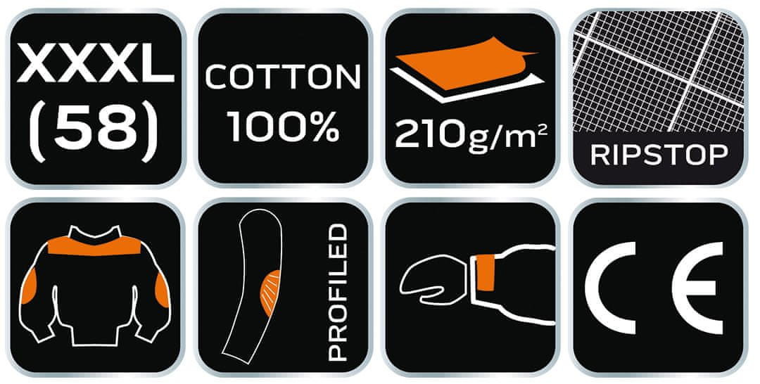 Delovna jopa Motosynteza, 100 % rip-stop bombaž, velikost XXXL 81–219-XXXL znamke NEO, se odlikuje z edinstvenim internim dizajnom in je del serije Motosynteza, ustvarjene v sodelovanju s Przemekom Szafrańskim. Dolgi rokavi, visok stoječi ovratnik in trpežna dvojna tkanina naredijo to jopo idealno za posebne naloge. Izdelana je iz 100 % rip-stop bombaža s težo 210 g/m² in ojačana s 100 % poliestrsko tkanino Oxford s težo 220 g/m². Glavna zadrga se zapenja s patentnimi gumbi pod razporkom, rokavi pa so dvojno nastavljivi in jih je mogoče oblikovati. Jopa ponuja številne možnosti shranjevanja: 2× ramenska žepa za pisala/svetilke/izvijače, 2× prsna žepa s patentnimi gumbi, 2× prostorna stranska žepa z zadrgo in 2× žepa na bokih z zadrgo, ojačana z Oxfordom. Ramena in hrbet imajo dvojno plast tkanine. Podloga, logotip in šivi so v modni, kontrastni barvi – podobni logotipu serije Motosynteza. Pulover ima notranjo etiketo z imenom in certifikat CE. To moderno oblačilo, primerno za delo in vsakodnevno nošenje, ima lahko dostopne žepe, ojačitve na mestih z večjo obrabo in odsotnost ježkov, ki so lahko moteči za mehanike.