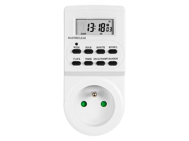 Elektronski časovnik s funkcijo varnostnega kopiranja spomina.MOŽNOSTI:- 10 programov vklopa/izklopa, nastavljivih z natančnostjo 1 minute- Izbirni ročni vklop/izklop- Izbirni 12/24-urni način- Velik LCD-zaslon s sekundami- Na voljo je funkcija poletnega časa- Funkcija Celoten opis