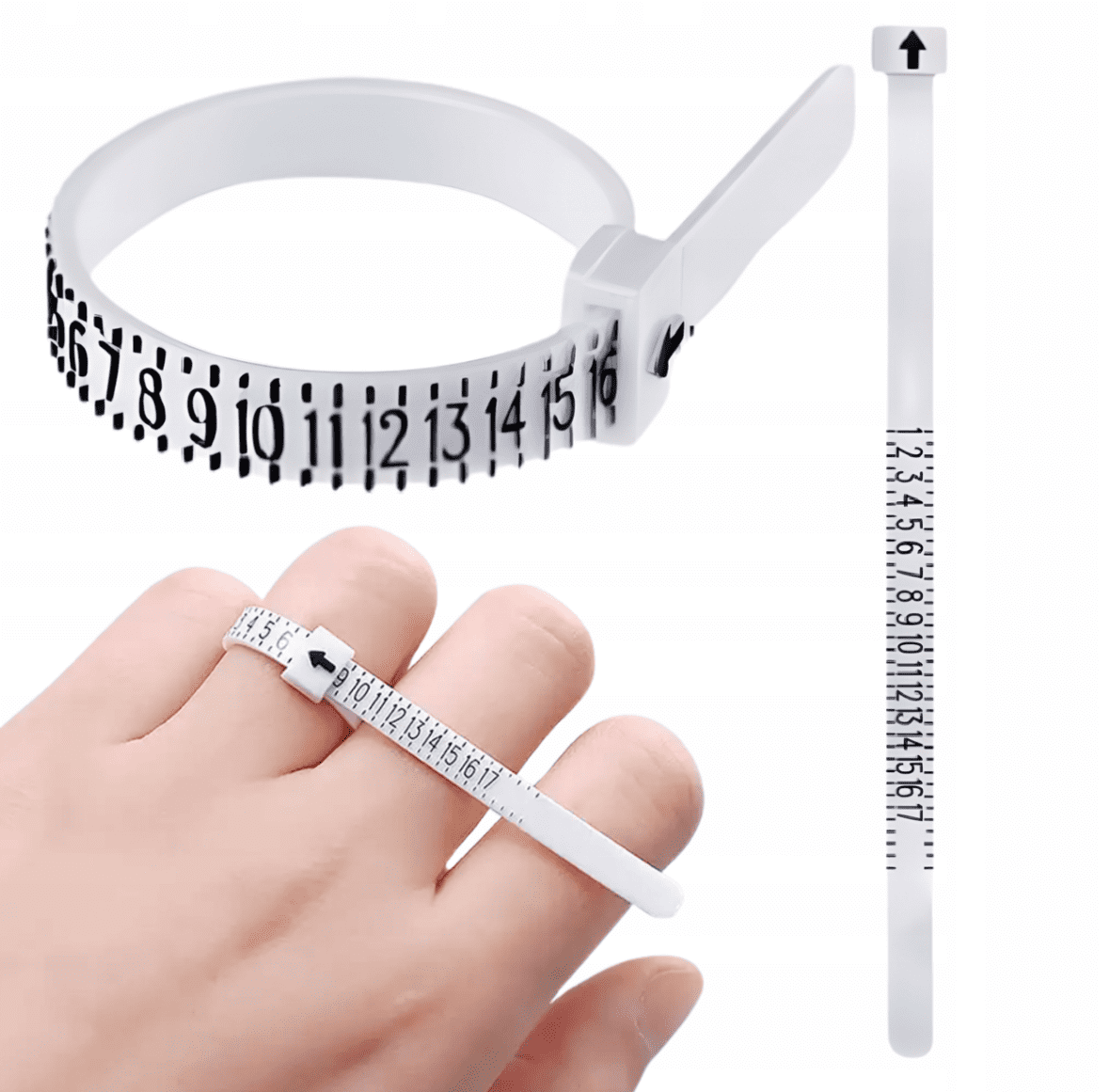Merilnik se enostavno prilagodi prstu, omogoča natančen rezultat brez stiskanja ali nelagodja. Idealno orodje, ki preprečuje napake pri nakupu ali izdelavi nakita.