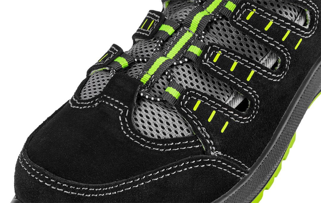 Delovni sandali S1P SR, jeklena kapica, jeklen vložek proti predrtju, velikost 43, znamke NEO TOOLS (5907558426281, 82–089–43), so odlična rešitev za tiste, ki cenijo udobje in varnost pri delu v toplem vremenu. Ti sandali imajo jekleno kapico, ki ščiti prste pred udarci do 200 J, in jeklen vložek proti predrtju, ki ščiti stopalo pred predrtji do 1100 N. Izpolnjujejo varnostni standard S1P SR, kar pomeni, da so antistatični, absorbirajo energijo v peti in so nedrseči na keramičnih površinah z detergentom SLS in jeklenih površinah z glicerinom. Zgornji del, izdelan iz kombinacije semiša in zračnega tekstila, zagotavlja udobje tudi pri visokih temperaturah. Podplat PU/PU je nedrseč in odporen na olja in bencin.