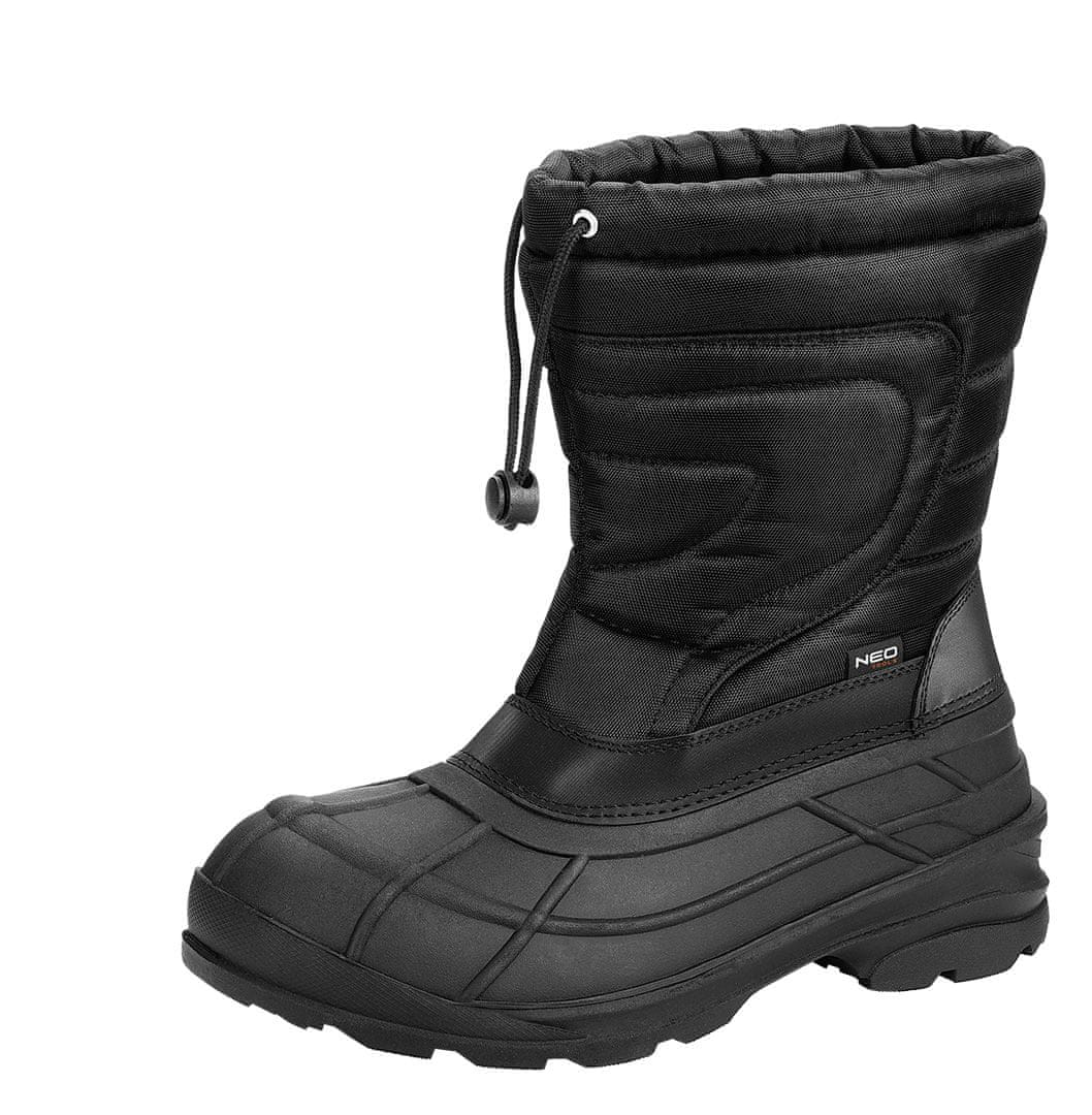 Moški snežni škornji brez zadrge, velikost 43, 82–138–43, znamke NEO, so izdelani iz poliestrske tkanine in TPR gume. Ti škornji so izolirani in odporni na temperature pod ničlo. Njihova posebna konstrukcija omogoča enostavno obuvanje in sezuvanje. Imajo zgornji del z vrvico za zapiranje z vrvico za priročno nastavitev. Snežni škornji NEO so odporni na sneg in vodo. Nedrseč podplat zagotavlja varnost na ledenih površinah. Ti škornji izboljšajo udobje med zimskim delom. Uporabni so na primer pri čiščenju snega s pločnikov in za vse zimske delavce.