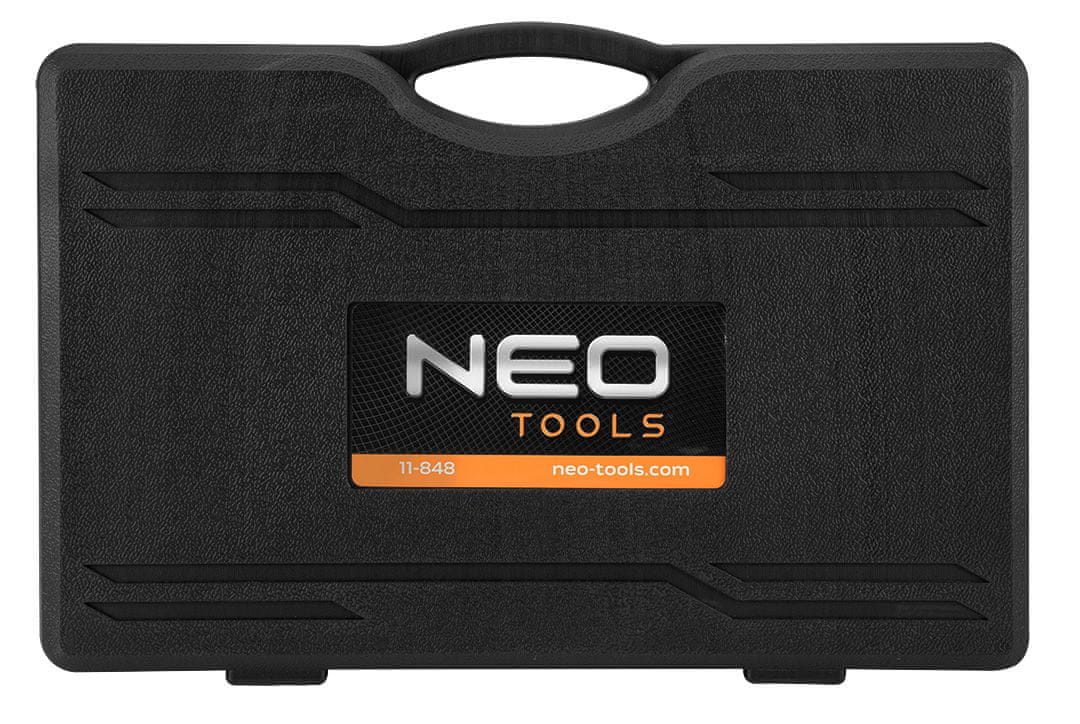 Snemalci ležajev NEO: 100, 200, 250 mm je 22-delni komplet za odstranjevanje ležajev, jermenic in zobnikov. Komponente kompleta omogočajo namestitev 2– in 3-krakih snemalcev, tako notranjih kot zunanjih. Komplet lahko nadomesti 12 različnih snemalcev. Komplet je dobavljen v kovčku.