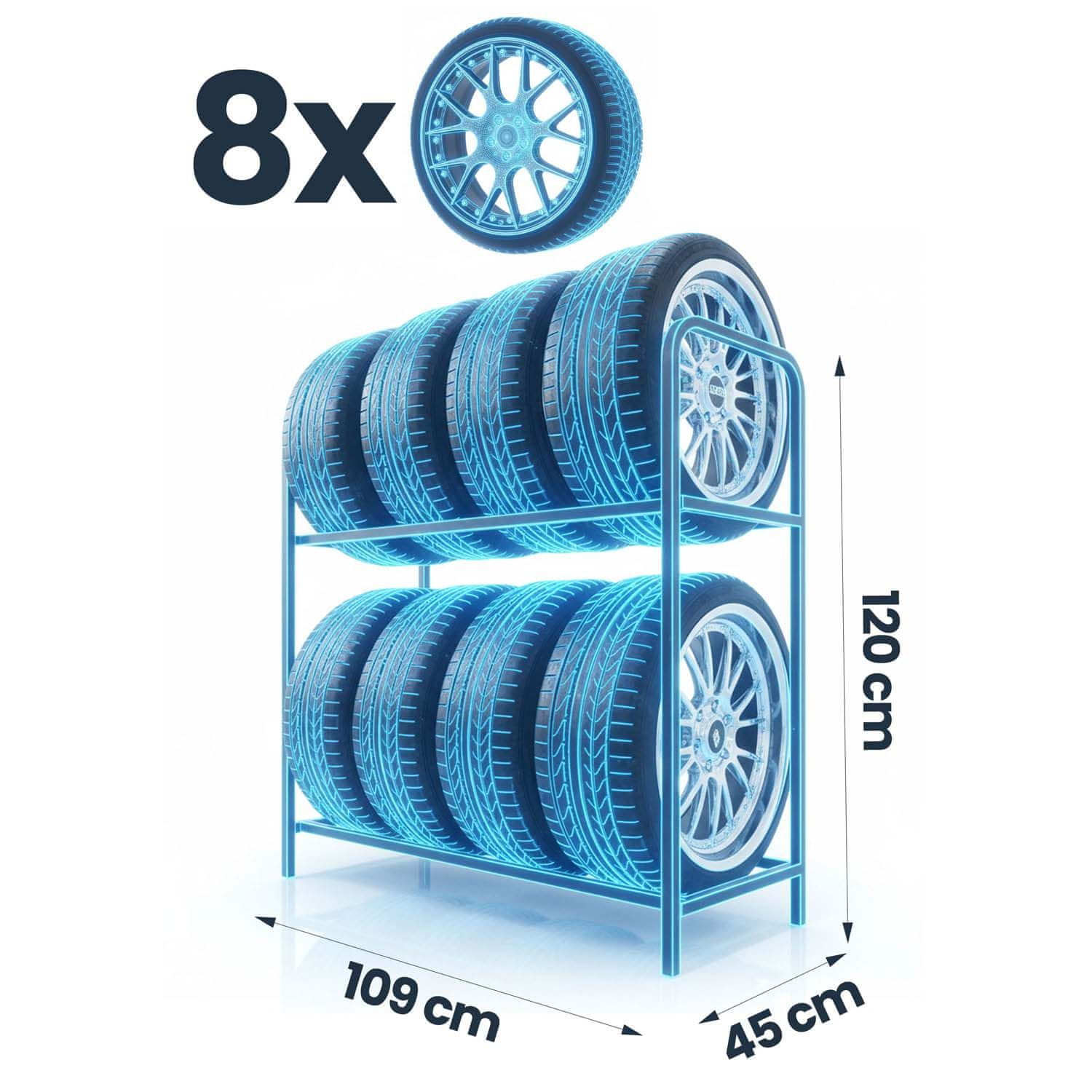8-delni stojalo za pnevmatike – idealno za garažo, klet in delavnico