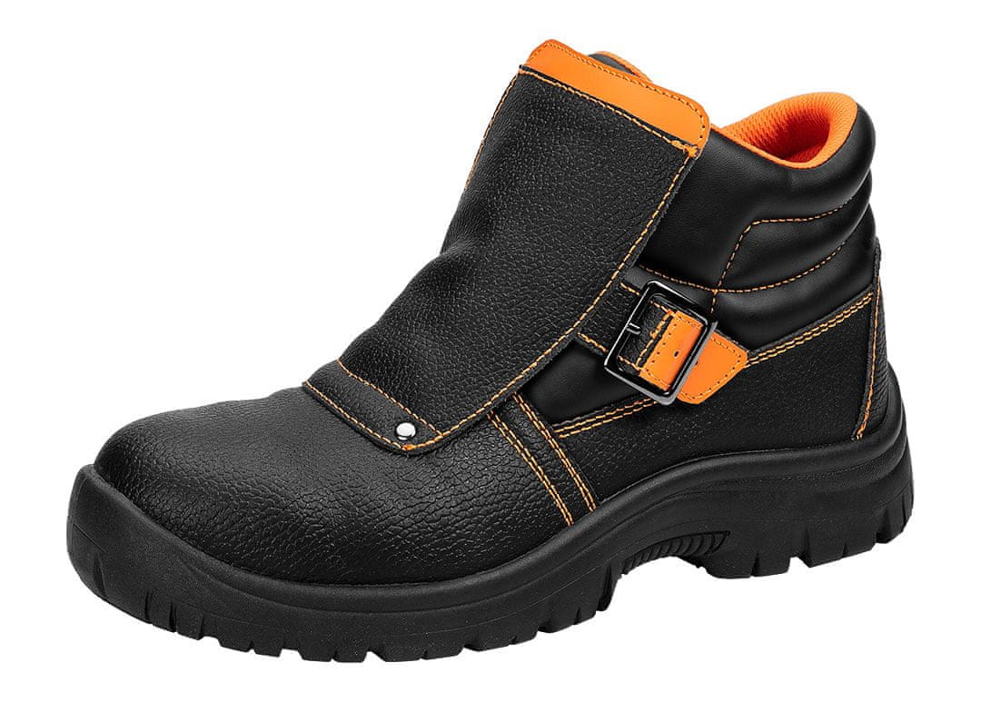 Varilski škornji S1P SRC 82–180–46 znamke NEO so zaščitna obutev, zasnovana za varjenje in obdelavo kovin. Imajo trpežen zgornji del iz reliefnega usnja, mrežasto pleteno podlogo in podplat iz PU. Imajo tudi peno EVA, kovinsko kapico in kovinski vložek, odporen proti prebadanju. Varilski čevlji NEO imajo oznako S1P SRC, kar pomeni, da so nedrseči na keramičnih površinah, prevlečenih z natrijevim lavril sulfatom (SLS), in na jeklenih površinah, prevlečenih z glicerolom. Kapica zagotavlja tudi zaščito prstov pred udarci do 200 joulov. Podplat ščiti pred prebadanjem, olji, bencinom in drugimi organskimi topili. Čevlji imajo zaprto peto in absorpcijo energije v predelu pete. Odlikujejo jih antistatične lastnosti. Enojni in dvojni šivi zagotavljajo vzdržljivost, prevleka iz vezalk, pritrjena z eno samo zaponko, pa krepi celotno konstrukcijo čevlja. NEO ima certifikat CE za skladnost s standardom EN ISO 20345. Na voljo so v velikostih od 39 do 47.