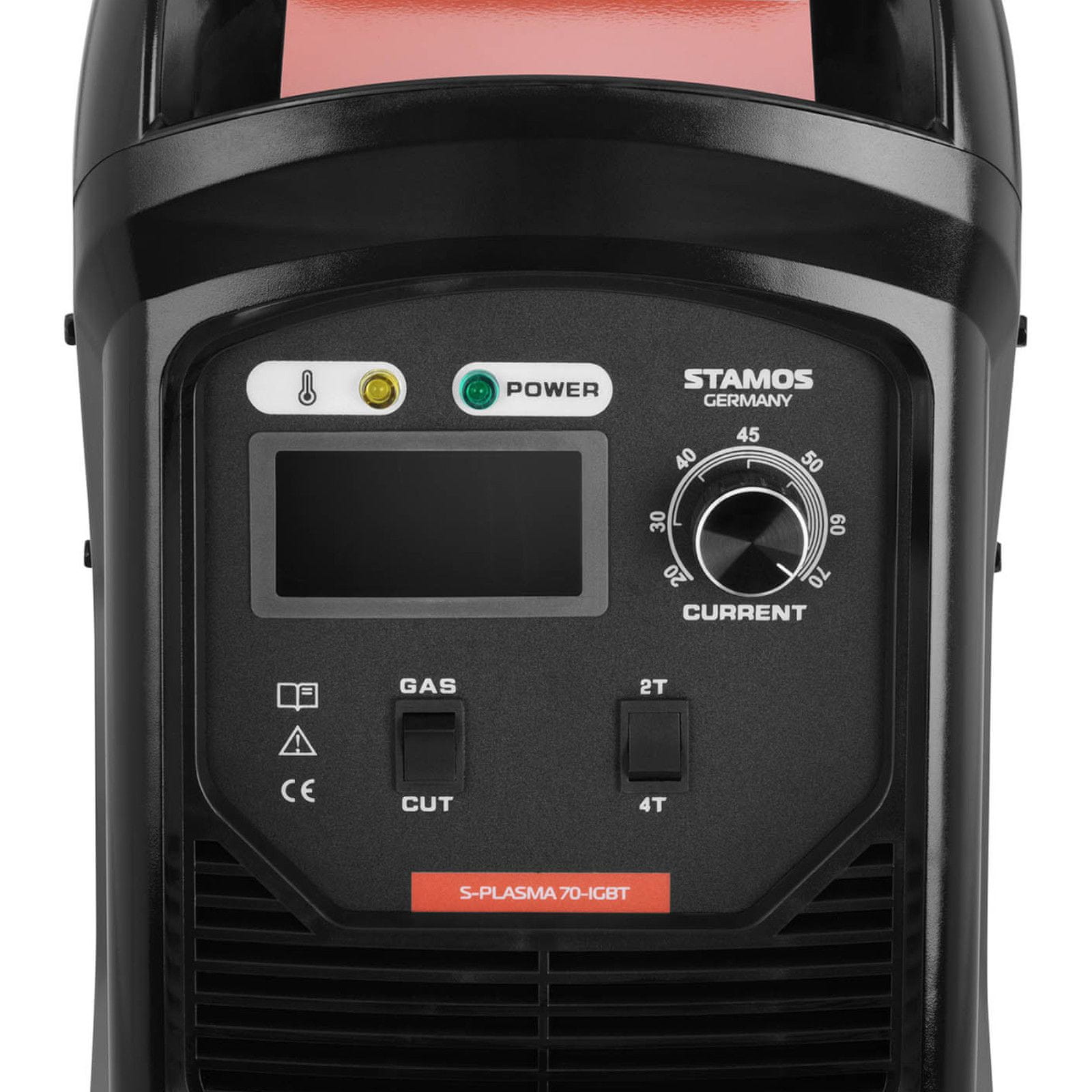 Plazemski rezalnik podjetja Stamos Germany bo primeren za avtomobilske delavnice, podjetja za obdelavo kovin in ljubitelje domače obrti. Odlično deluje z nelegiranim, nizko legiranim in visoko legiranim jeklom. Primeren je za obdelavo niklja, bakra, titana, cirkonija in njihovih zlitin. Najsodobnejša tehnologija IGBT zagotavlja odlično zmogljivost rezanja. Trikonični električni vodnik deluje kot elektronsko stikalo, ki ima visoko učinkovitost, hitro preklapljanje in nizko stopnjo okvar. Pilotni oblok omogoča vžig in izpust plina po rezanju ter tako ščiti obdelovanec pred oksidacijo. Dva načina delovanja 2T in 4T omogočata prilagoditev stroja za neprekinjeno ali točkovno rezanje. Kompaktna velikost in majhna teža omogočata udoben prevoz rezalnika. Tok je nastavljiv od 30 do 70 A. Intuitivna nadzorna plošča z zaslonom LCD omogoča nadzor nad delovnimi parametri. Priloženi regulator tlaka usklajuje tlak stisnjenega zraka z varilnim tokom, kar omogoča prilagoditev stroja vrsti materiala ali rezanja. Glede na vaše potrebe lahko priključite kompresorje za zrak z različnimi zmogljivostmi. Za manjša opravila bo dobro deloval kompresor z večjo zmogljivostjo, medtem ko je za zapletene in dolge reze primeren kompresor z večjo zmogljivostjo. S tem se izognete padcem tlaka.