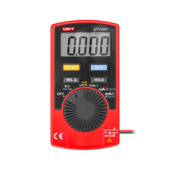UT120C se ponaša z majhnimi dimenzijami (110 × 58,2 × 10,8 mm) in lahkotno konstrukcijo (76 g), kar ga naredi priročnega za prenašanje in idealnega za delo na terenu. Zaslon velikosti 43 × 22 mm zagotavlja berljivost odčitkov, priloženi dodatki, kot so torbica in baterija, pa povečujejo udobje in mobilnost naprave.