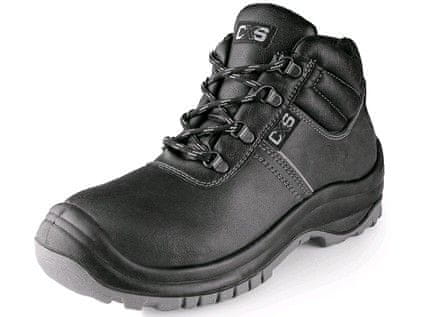 Delovni čevlji – gležnjarji, usnjeni, z zaščitno jekleno kapico in vložkom. Material: gladko usnje z odsevnim zgornjim delom iz PVC-ja, zračna tekstilna podloga. Podplat PU-PU, antistatičen, protizdrsen, odporen na olje.
