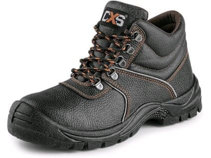 Gležnjarji, usnjeni, z jekleno zaščitno kapico in vložkom. Material: vrhnja plast vodoodporno goveje usnje cepljenjec, debelina 1,6–1,8 mm, podloga Cambrelle. Podplat PU-PU, antistatičen, protizdrsni, odporen na olje.