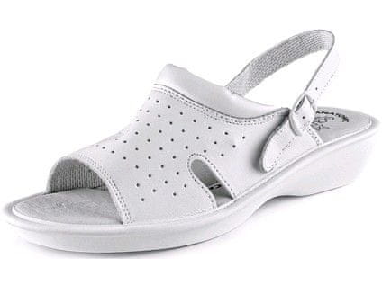 Ženski usnjeni sandali, perforirani, s peto. Material: zgornji del iz naravnega usnja, podplat iz anatomsko oblikovanega svinjskega usnja, PU podplat.