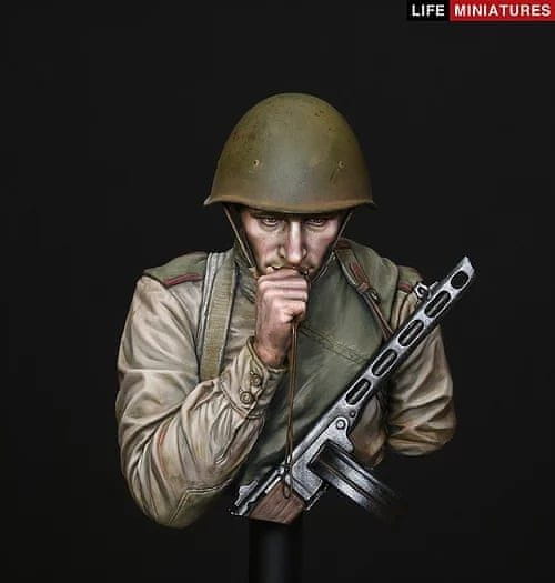 Life-miniatures maketa-miniatura ‘ON THE EDGE OF NO MAN’S LAND’ WW2 YOUNG RED ARMY INFANTRYMAN, BATTLE OF KURSK • maketa-miniatura 1:10 figure • Level 5