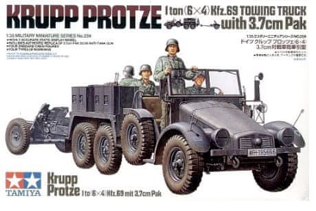 Tamiya maketa-miniatura Krupp Protze - 1 tona (6x4) Kfz.69 vlečni tovornjak s 3,7 cm Pak • maketa-miniatura 1:35 tovornjaki • Level 4
