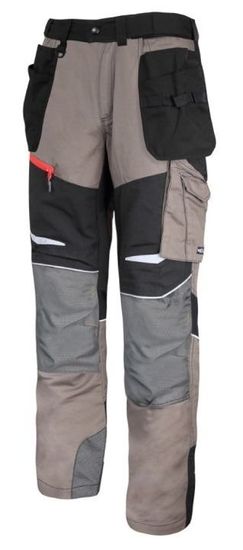 MATERIAL: 35% bombaž, 65% poliester 13 žepov, vključno z 1 z zadrgo. Praktični žepi za orodje. Žep za mobilni telefon, zavarovan s tkanino, ki odbija elektromagnetno sevanje. Raztegljivi vložki iz „4-smerne elastične“ tkanine (raztegne se v 4 smeri) zagotavljajo prožnost in udobje med uporabo. Mrežasto prezračevanje na kolenih. Odsevni vložki, ki povečujejo varnost med delom. Trojno šivani šivi. Dodatna ojačitev šivov na območju mednožja. Inovativna prilagoditev širine pasu s pomočjo posebne strukture z elastiko. Protidrsni trak na pasu (na notranji strani), ki preprečuje, da bi oblačilo zgornjega dela telesa zdrsnilo iz hlač. Zanke za ključe. Zanka za kladivo. 3 držala za merilne trakove. Pasove zanke. Ojačani žepi, zaščitni žepi za koleno in spodnji del hlač, ojačani s tkanino, odporno proti obrabi (500D poliester). Ozek kroj. Eleganten in zanimiv dizajn. Vstavite osebni dokument. STANDARD: EN ISO 13688