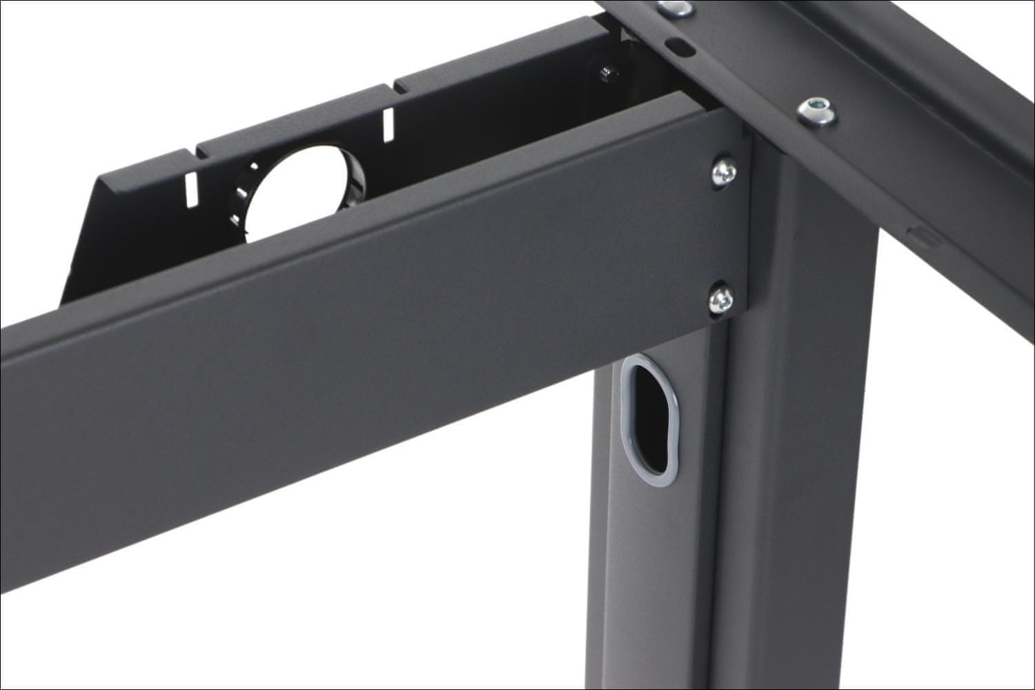 Kovinski okvir za pisalno mizo. Ima nastavljiv žarek. Za mizno ploščo dolžine od 140 do 180 cm. Ima nastavljive noge. Višina 72,5 cm. Primerno za dom in pisarno. Grafitno-črna. Celoten opis