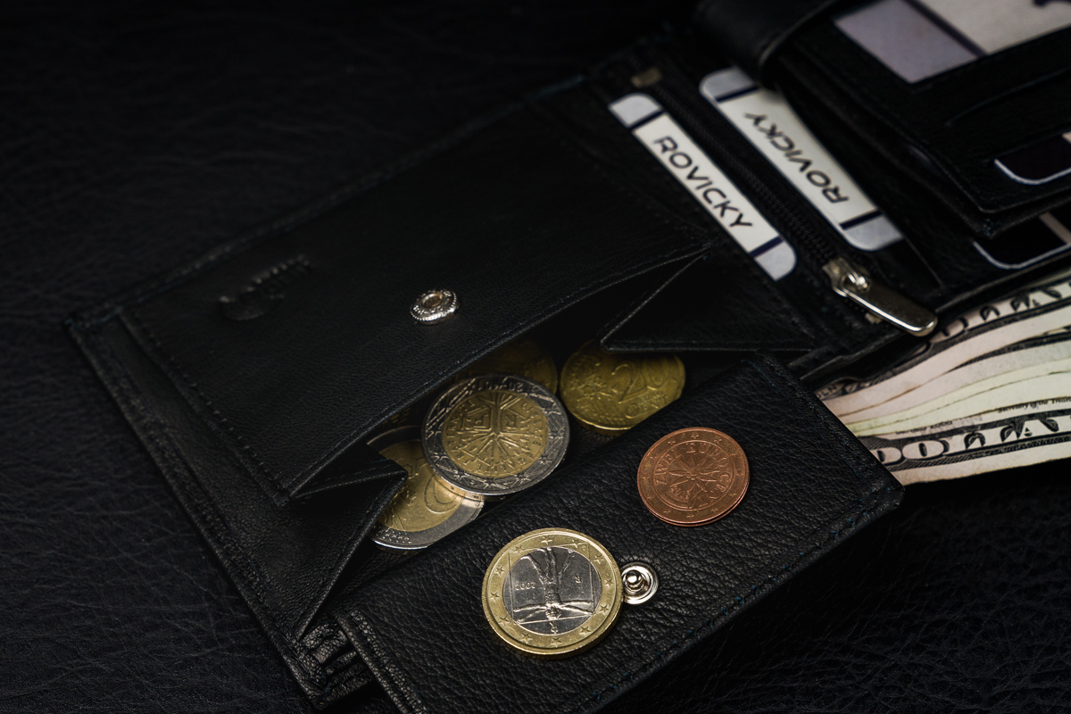 V žep z robustnim zapiranjem na gumb lahko shranite kovance. To omogoča zelo priročno shranjevanje kovancev brez strahu pred odprtjem žepa.