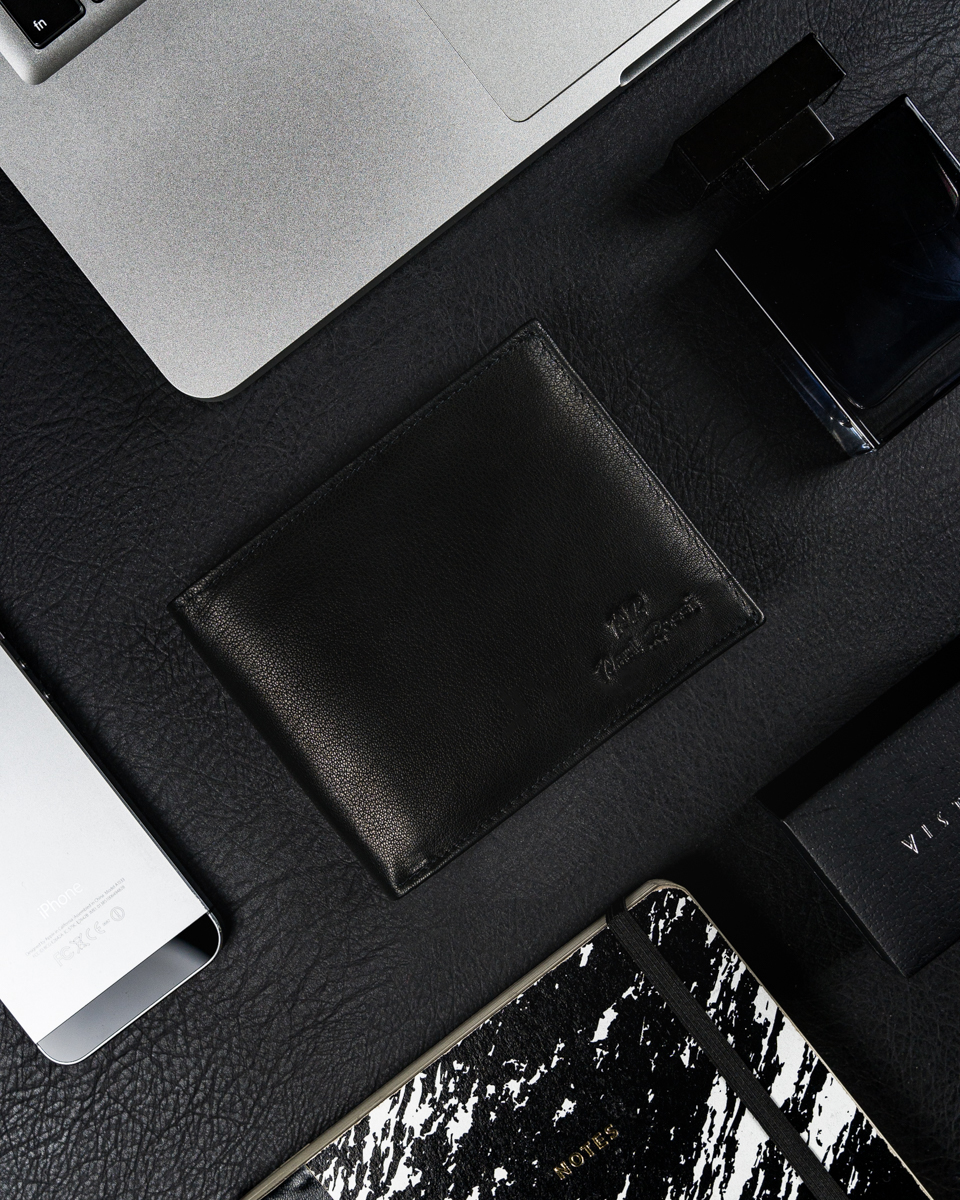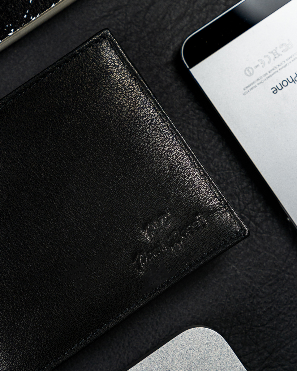 KLASIČNA ČRNA MOŠKA USNJENA DENARNICA, PRAVO USNJE