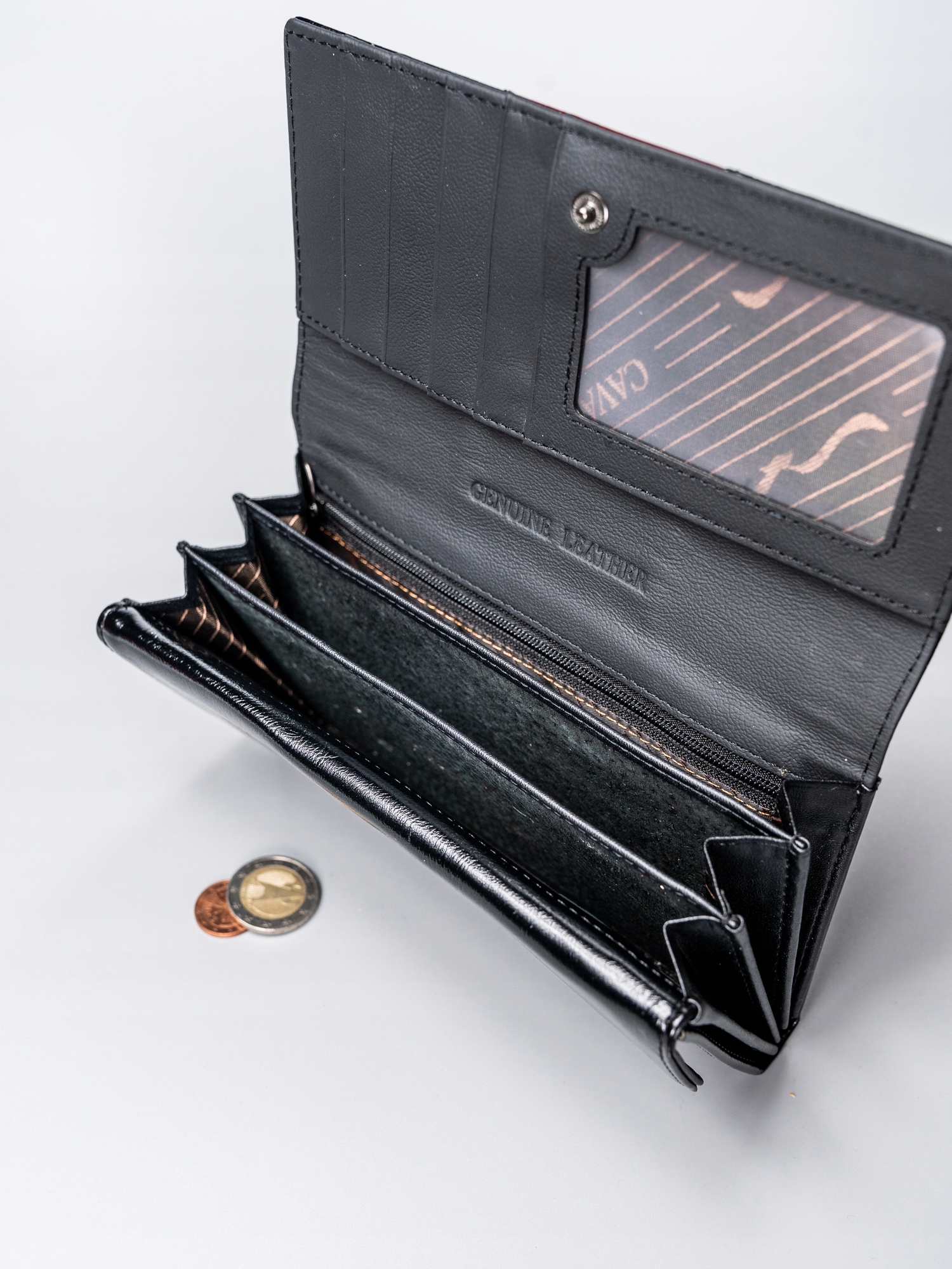 Izdelana iz najkakovostnejšega naravnega in eko usnja, zunaj sijoča, znotraj pa mat. Na sprednji strani denarnice je logotip CAVALDI. Vsaka denarnica ima edinstven slog in značaj. Zasnovana v skladu z najnovejšimi trendi, je popolna izbira za vsako žensko. Odlična kakovost, brezhibna izdelava in edinstven videz – to je naša popolna izbira za vas.