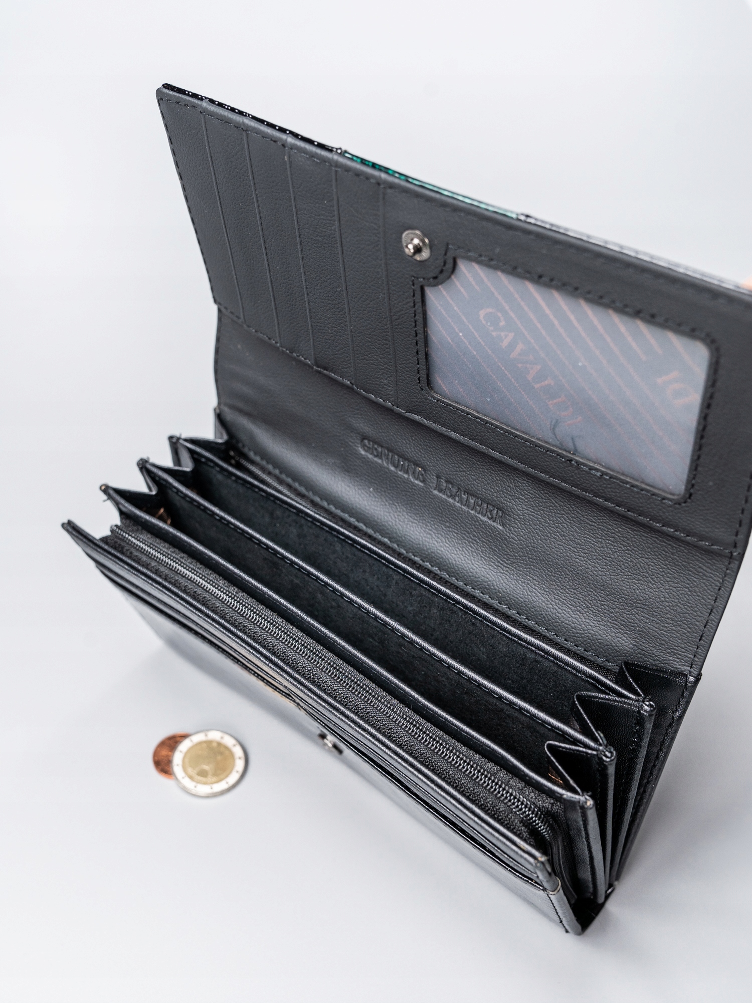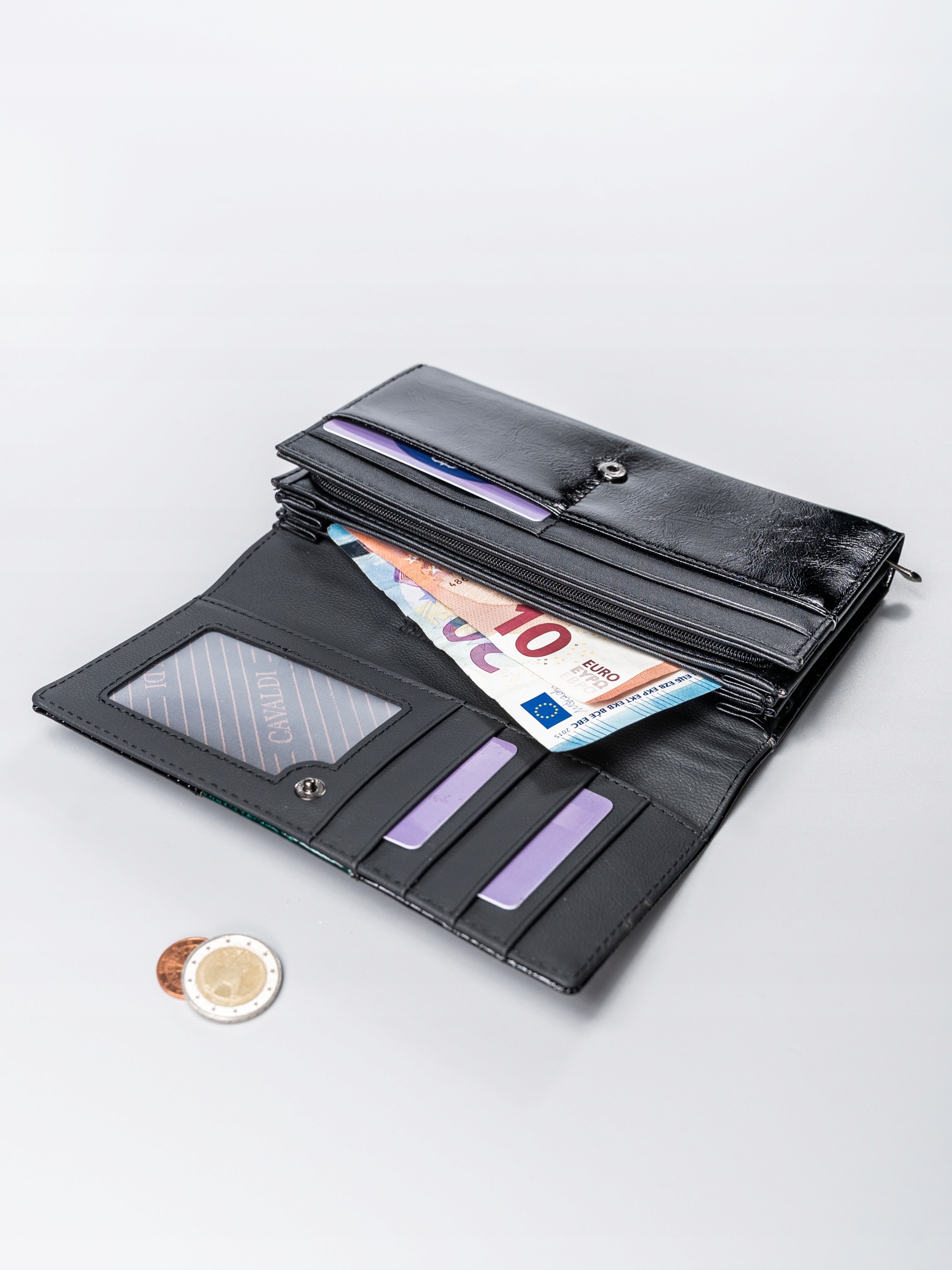 Izdelana iz najkakovostnejšega naravnega in eko usnja, patentirana na zunanji strani in mat na notranji strani. Na sprednji strani je logotip CAVALDI. Vsaka denarnica ima edinstven slog in značaj. Zasnovano v skladu z najnovejšimi trendi. Popolna možnost za vsako žensko. Odlična kakovost, brezhibna izdelava in edinstven videz – to je naša popolna možnost za vas.