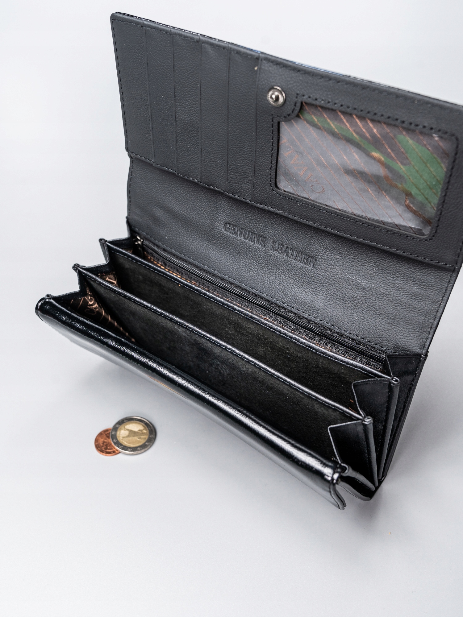 Izdelana iz najkakovostnejšega naravnega in eko usnja, lakiranega usnja na zunanji strani in matiranega usnja na notranji strani. Na sprednji strani je logotip CAVALDI. Vsaka denarnica ima edinstven slog in značaj. Zasnovana v skladu z najnovejšimi trendi. Popolna možnost za vsako žensko. Odlična kakovost, brezhibna izdelava in edinstven videz – to je naša popolna možnost za vas.
