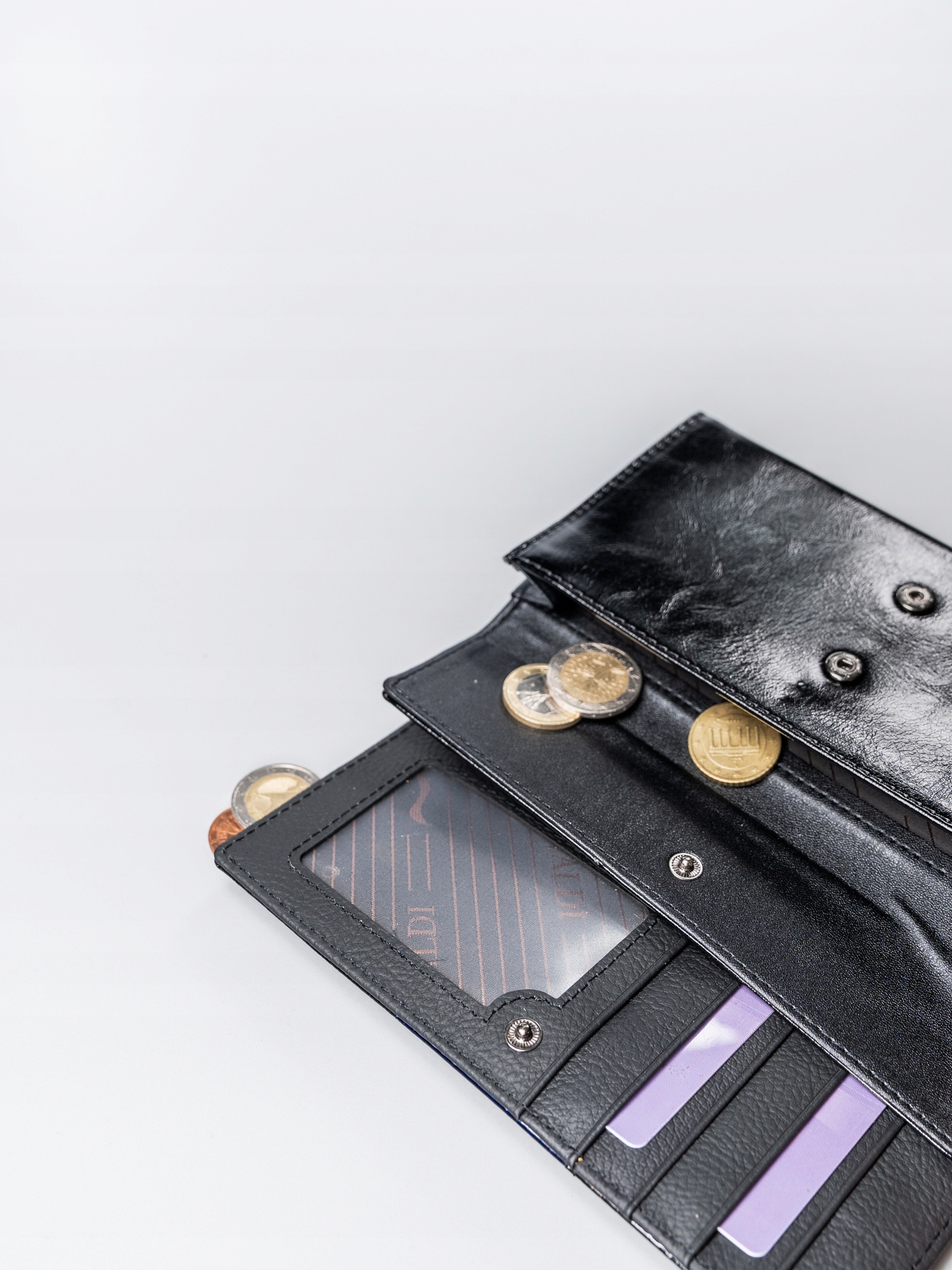 Izdelana iz najkakovostnejšega naravnega in eko usnja, lakiranega usnja na zunanji strani in matiranega usnja na notranji strani. Na sprednji strani je logotip CAVALDI. Vsaka denarnica ima edinstven slog in značaj. Zasnovana v skladu z najnovejšimi trendi. Popolna možnost za vsako žensko. Odlična kakovost, brezhibna izdelava in edinstven videz – to je naša popolna možnost za vas.