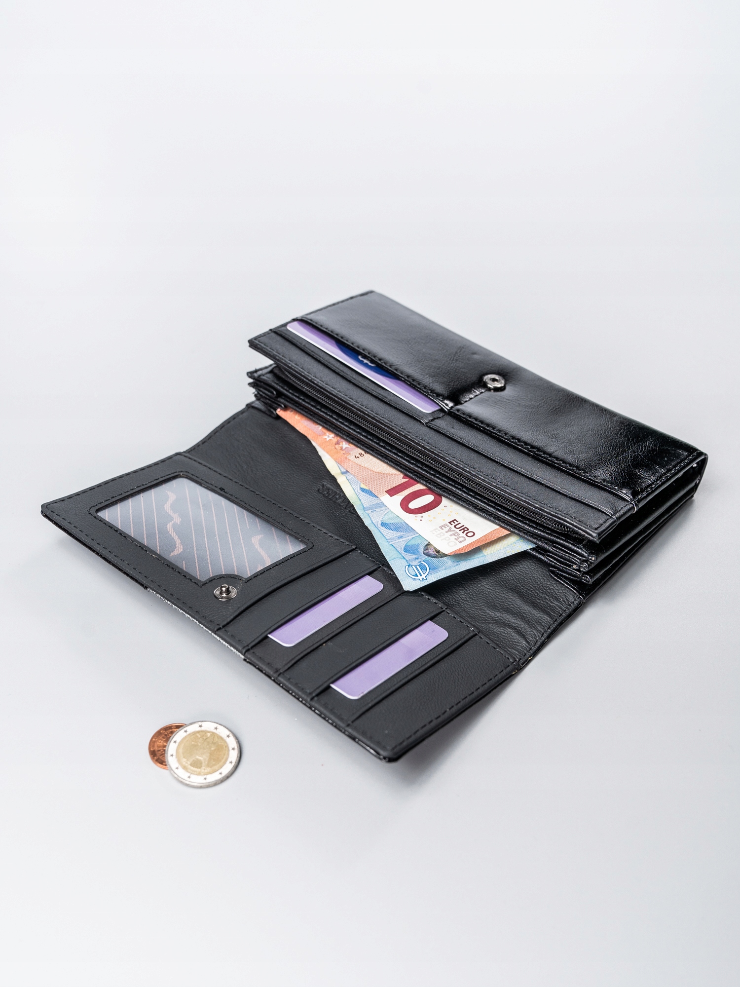 Zahvaljujoč premišljeni razporeditvi žepov in rež za kartice bo vanjo shranila tako gotovino kot vse vaše najpomembnejše kartice in dokumente.