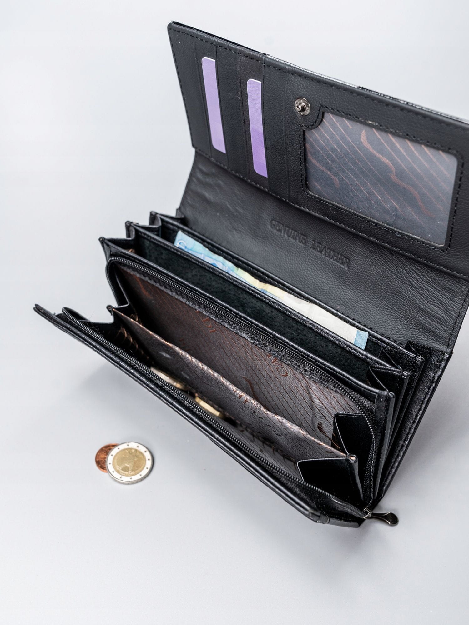 Vsaka denarnica je popolnoma izdelana z veliko pozornostjo do vsake podrobnosti. To zagotavlja visoko vzdržljivost izdelka. Ta denarnica vam bo služila dolga leta. Kovinski elementi, šivi, zadrge in vsi drugi elementi denarnice prispevajo k PREMIUM izdelku. Usnje, iz katerega je izdelana denarnica, je zelo mehko na dotik. PROSTOR ZA DOKUMENTE