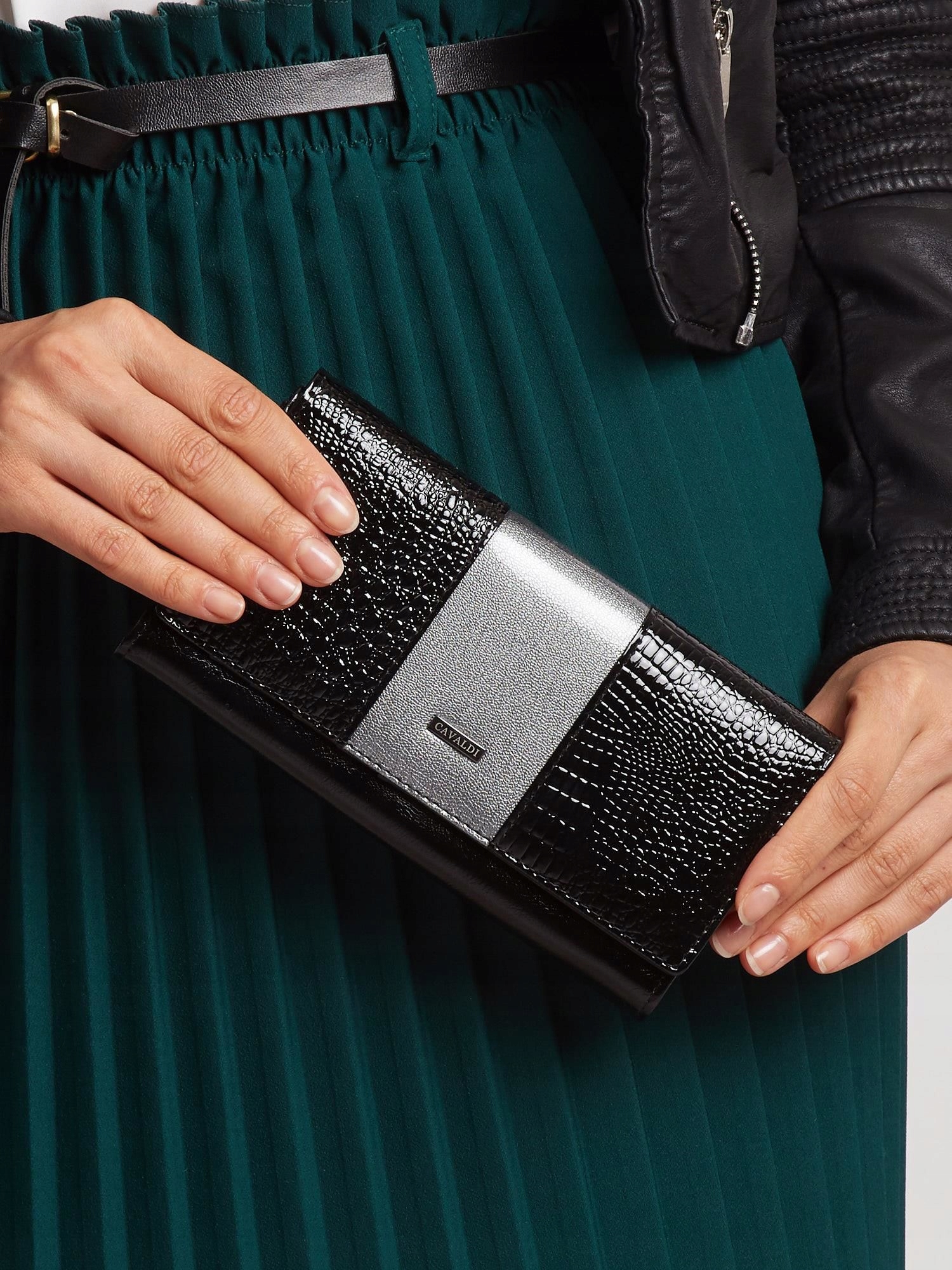 Izdelana iz najkakovostnejšega naravnega in eko usnja, lakirana na zunanji strani in mat na notranji strani. Na sprednji strani je logotip CAVALDI. Vsaka denarnica ima edinstven slog in značaj. Zasnovana v skladu z najnovejšimi trendi, je popolna izbira za vsako žensko. Odlična kakovost, brezhibna izdelava in edinstven videz – to je naša popolna izbira za vas.