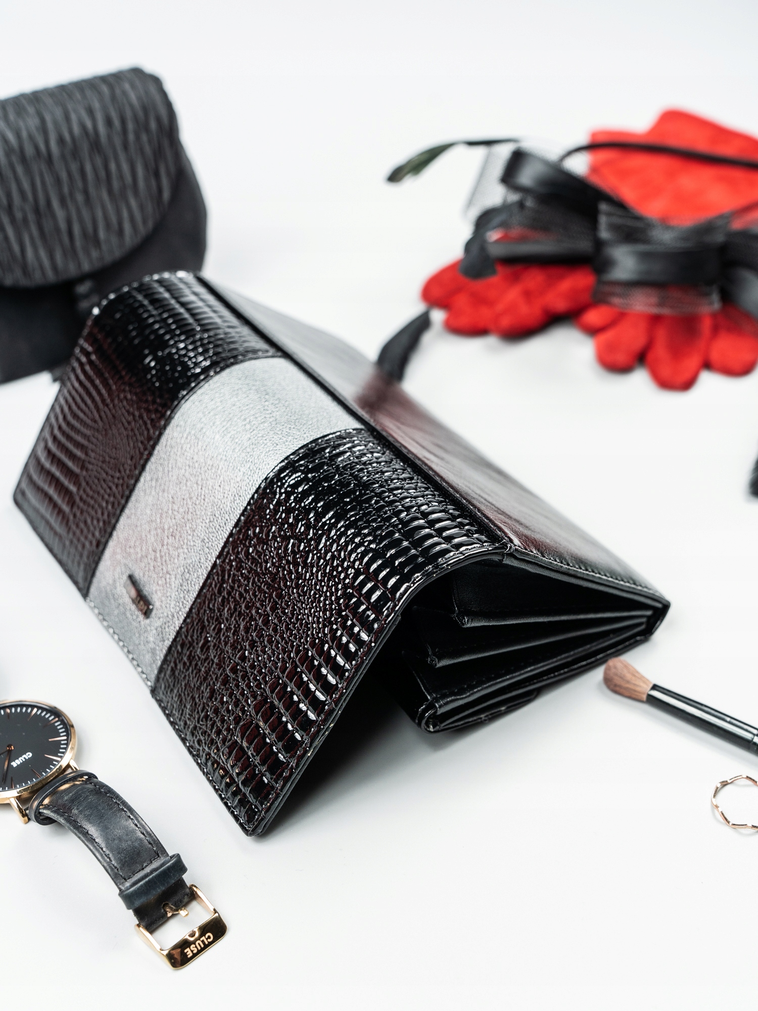 Osupljiva ženska denarnica z neverjetnim vzorcem v temno srebrnem odtenku.