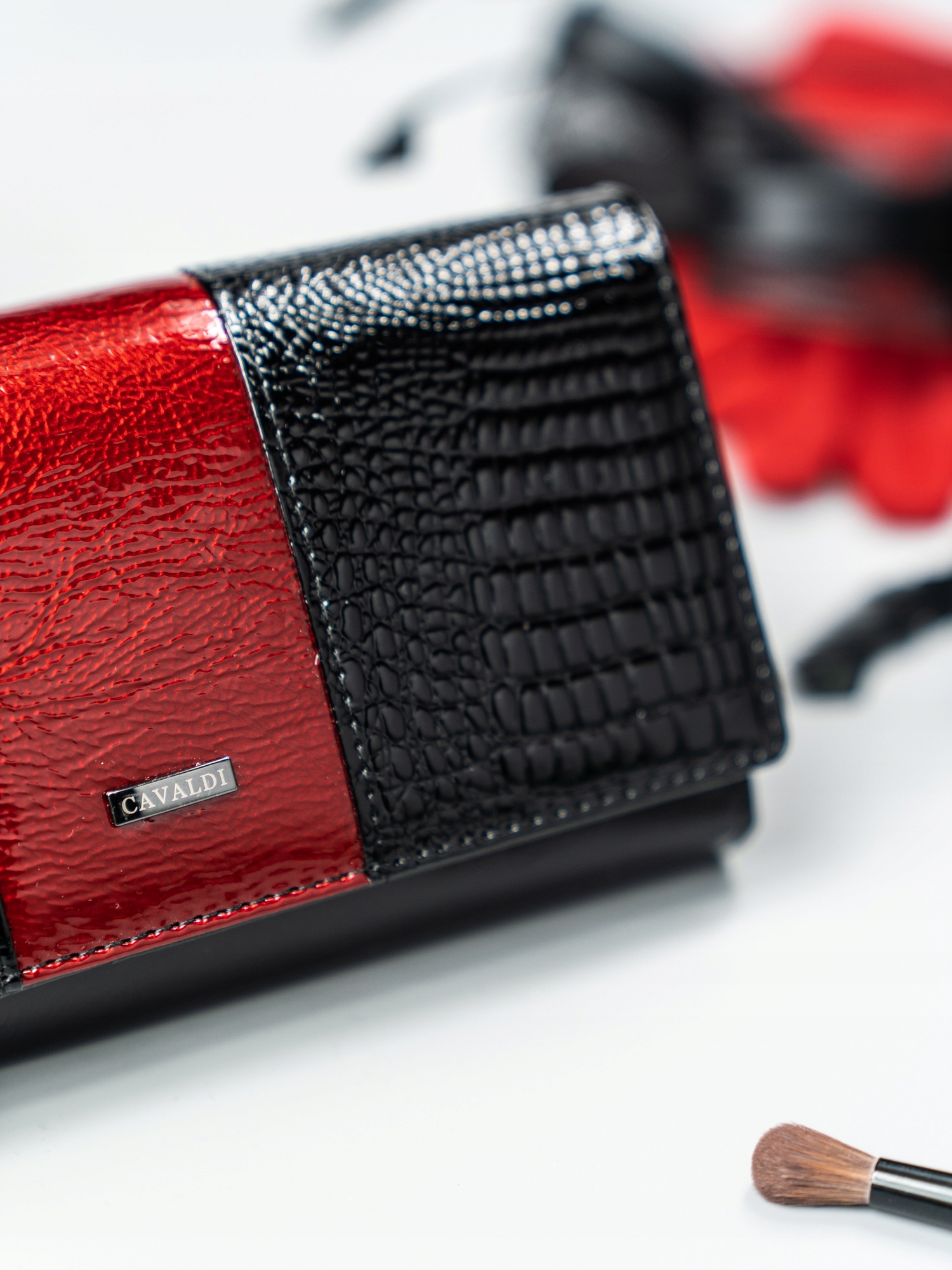Predstavljamo čudovito, elegantno žensko usnjeno denarnico iz najnovejše kolekcije CAVALDI. Denarnica je na voljo v klasični, vedno modni rdeči barvi.