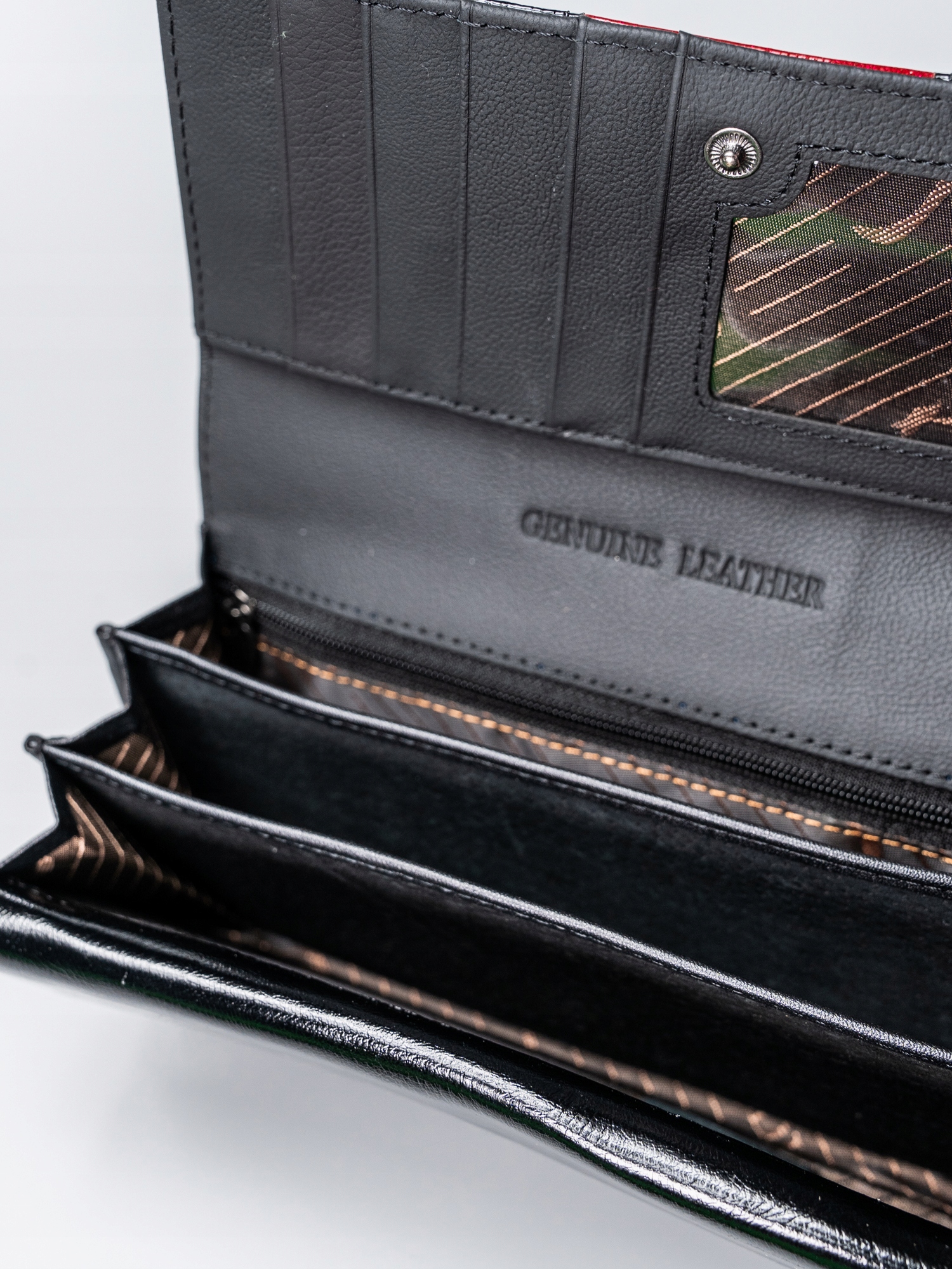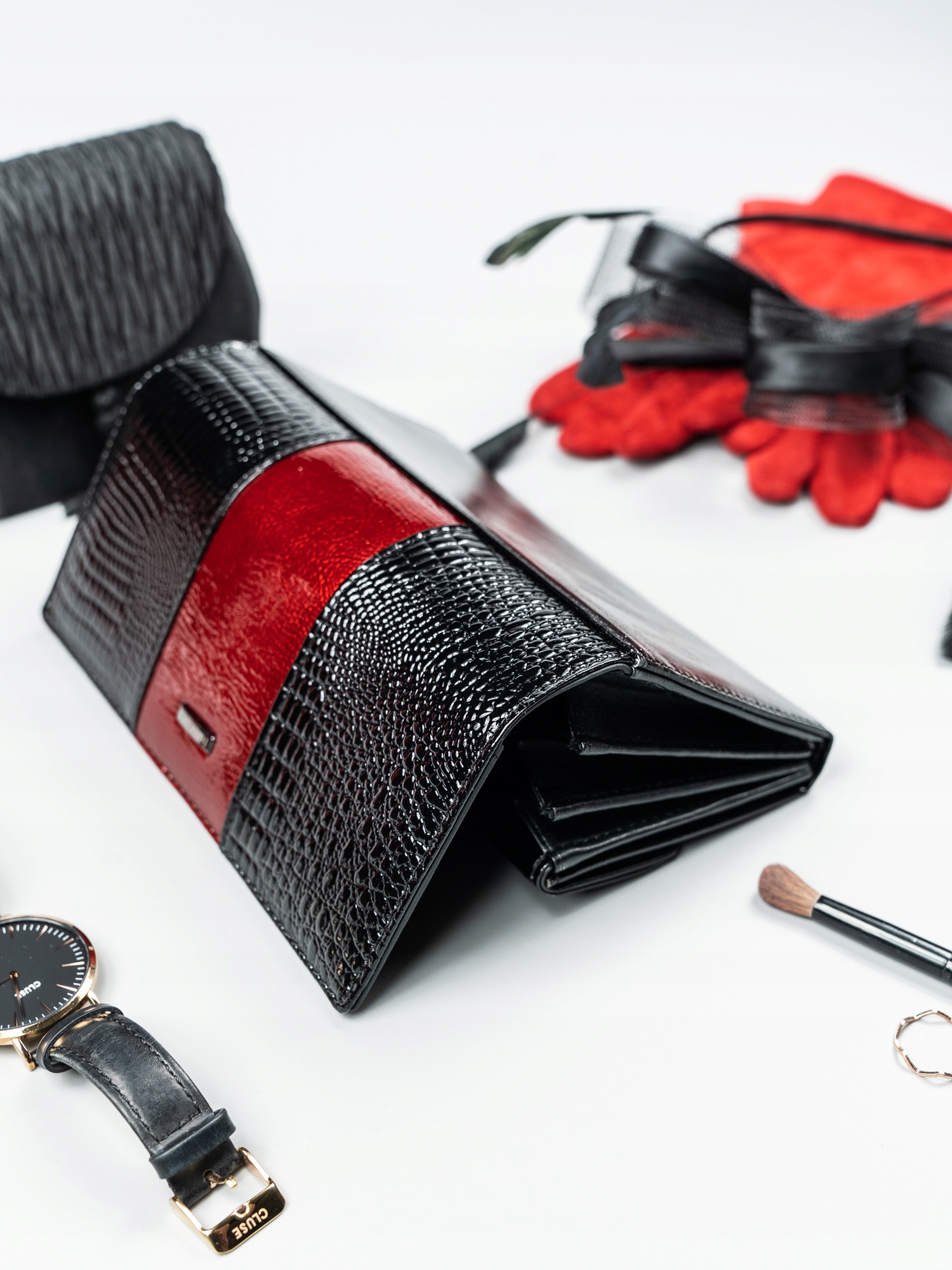 Rdeča denarnica iz pravega in eko usnja izgleda najbolje in je najbolj priljubljena izbira za večino žensk. Pravijo, da rdečo denarnico nosijo čustvene, energične, močne, pogumne in tekmovalne osebe. Dodatek rdeče denarnice pomaga ženskam, da izstopajo iz množice. Lastnice denarnic v tej barvi običajno preživljajo svoje družine in lahko zaslužijo velike vsote denarja. Feng šuj pa pravi, da denar ljubi rdečo barvo, zato ne „pobegne“ iz rdečih denarnic.