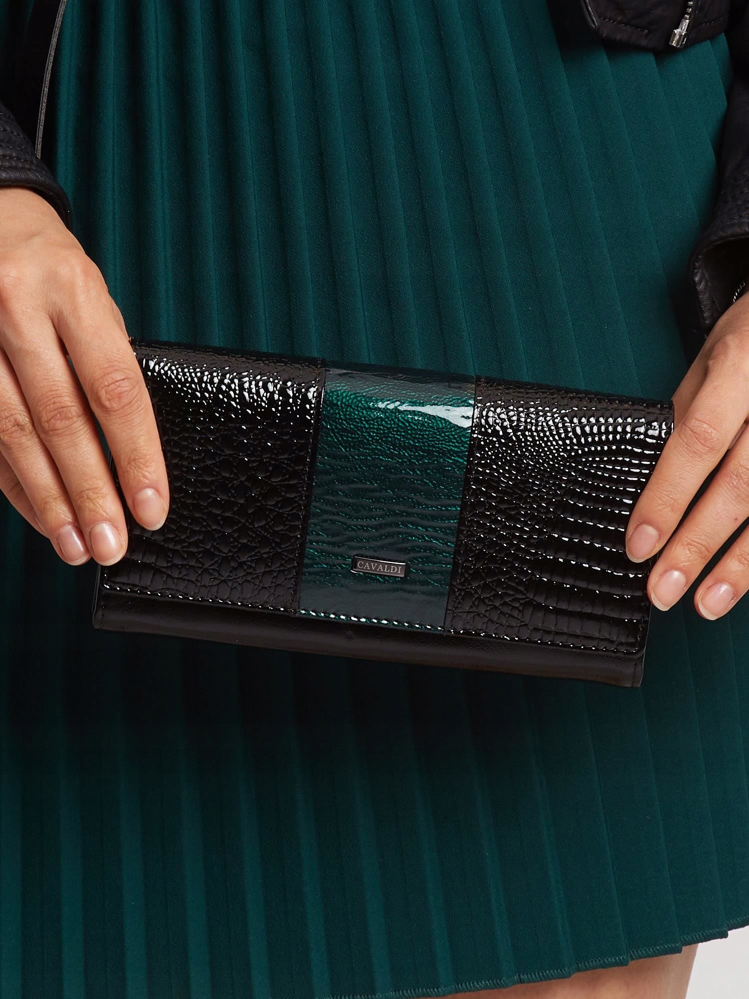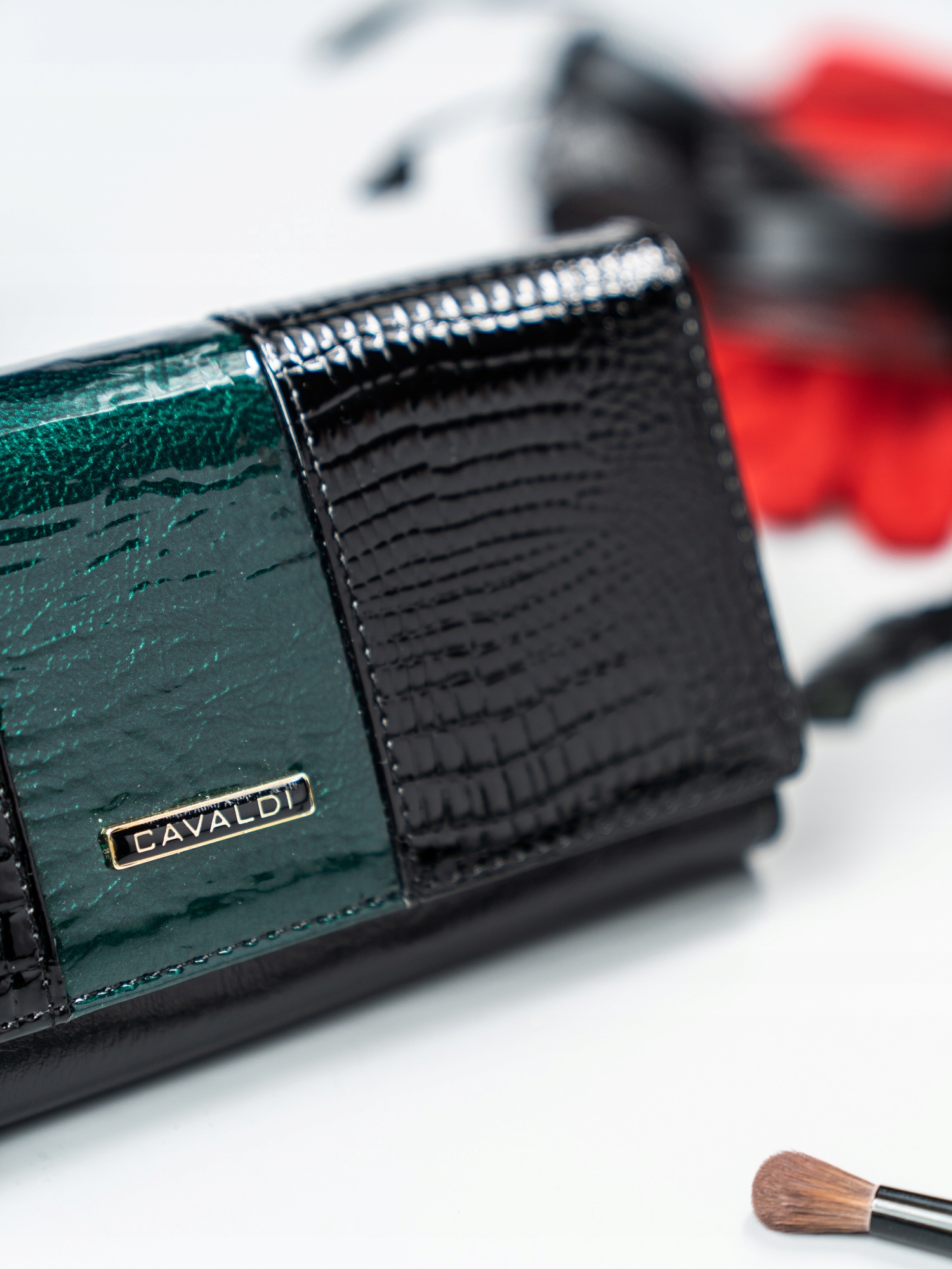 Predstavljamo vam neverjetno, elegantno žensko usnjeno denarnico iz najnovejše kolekcije CAVALDI. Denarnica je patentirana v osupljivi zeleni barvi.
