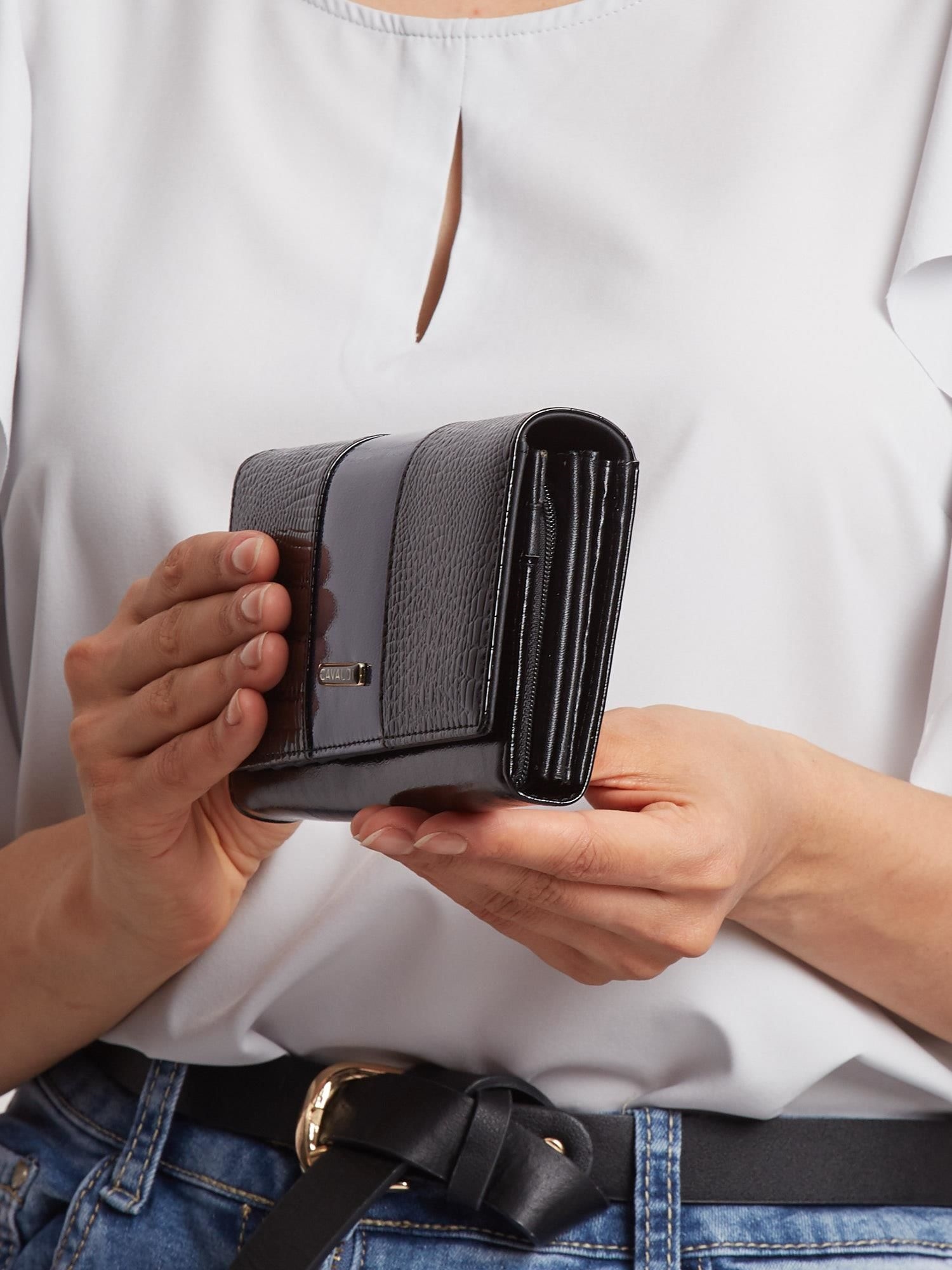 Izdelana iz najkakovostnejšega naravnega in eko usnja, lakiranega usnja na zunanji strani in matiranega usnja na notranji strani. Na sprednji strani je logotip CAVALDI. Vsaka denarnica ima edinstven slog in značaj. Zasnovana v skladu z najnovejšimi trendi. Popolna možnost za vsako žensko. Odlična kakovost, brezhibna izdelava in edinstven videz – to je naša popolna možnost za vas.
