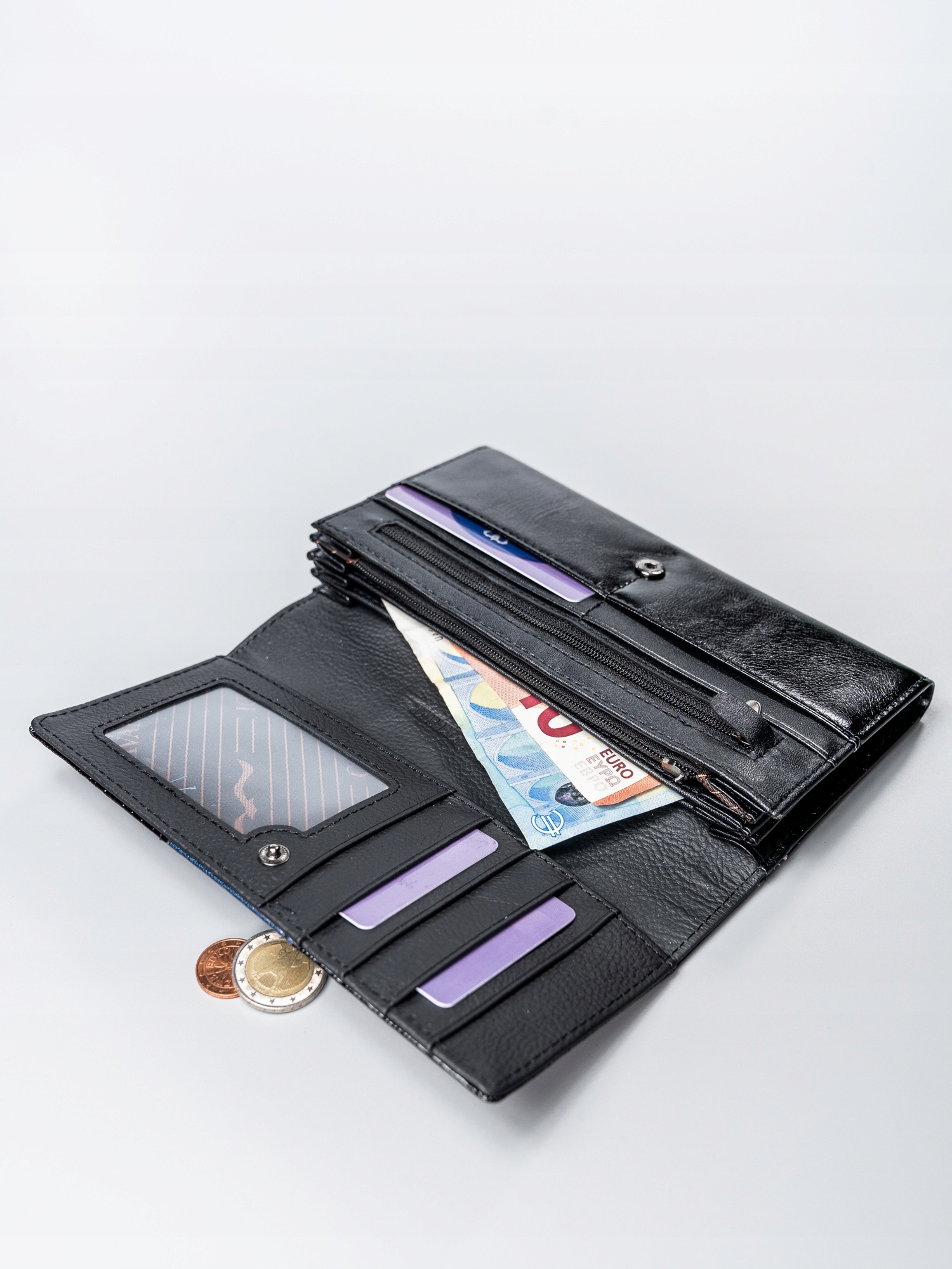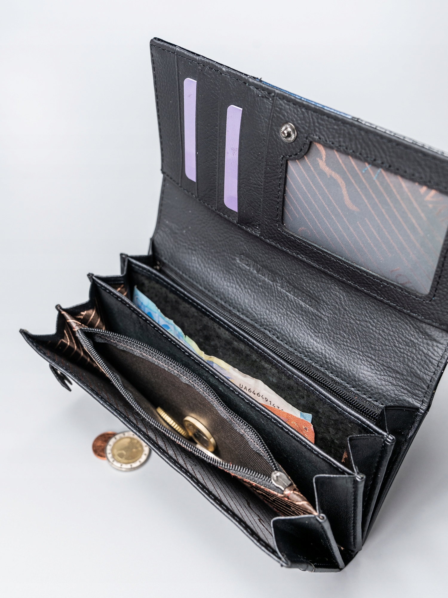 Zahvaljujoč premišljeni razporeditvi žepov in rež za kartice lahko vanjo spravite tako gotovino kot vse vaše najpomembnejše kartice in dokumente.