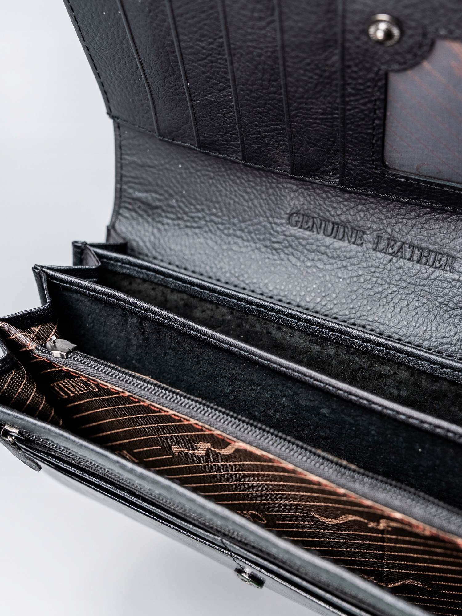 Vsaka denarnica je popolnoma izdelana z veliko pozornostjo do vsake podrobnosti. To zagotavlja visoko vzdržljivost izdelka. Ta denarnica vam bo služila dolga leta. Kovinski elementi, šivi, zadrge in vsi drugi elementi denarnice prispevajo k PREMIUM izdelku. Usnje, iz katerega je izdelana denarnica, je zelo mehko na dotik. PROSTOR ZA DOKUMENTE